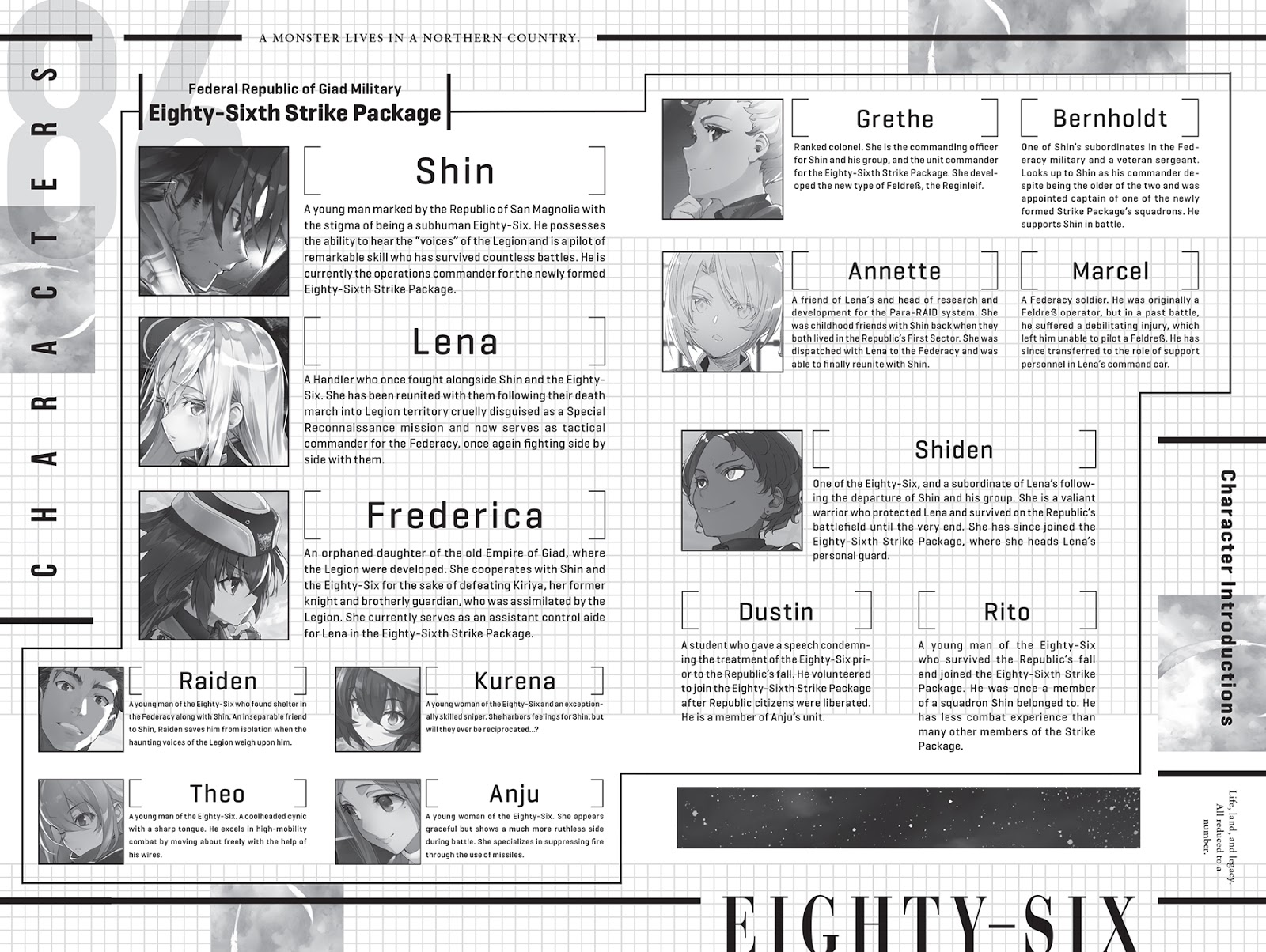 Vika telah mendengar tentang penganiayaan Republik San Magnolia terhadap Eighty-Six. Dikelilingi oleh Legiun dan dengan punggung menempel di dinding, Alba dari Republik memilih untuk tidak membebaskan diri dari situasi tersebut tetapi malah membutakan diri terhadapnya dan mengalihkan tanggung jawab ke pihak lain, yang mengarah pada kesimpulan yang menyedihkan.