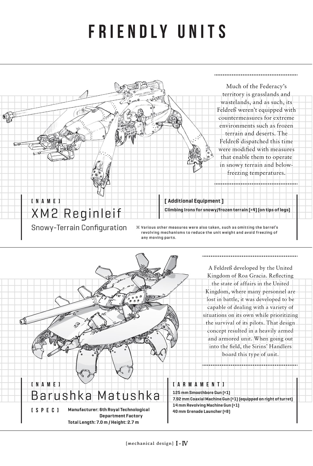 Saat Shin diam-diam memakan dagingnya yang dibumbui krim asam dan kentang tumbuknya, dia bisa mendengar suara-suara dari meja lain meskipun tidak benar-benar berusaha mendengarkan mereka. Kekuatan dari pangkalan ini adalah, mengesampingkan Prosesor Paket Serangan, sebagian besar Sirin, tetapi itu tidak sepenuhnya tanpa awak. Penangan Sirin ada di sana, tentu saja, begitu pula infanteri yang bertugas sebagai pasukan pertahanan pangkalan, kru pemeliharaan, tim pengumuman, dan regu penembak yang bertugas mengoperasikan meriam artileri tetap pangkalan.