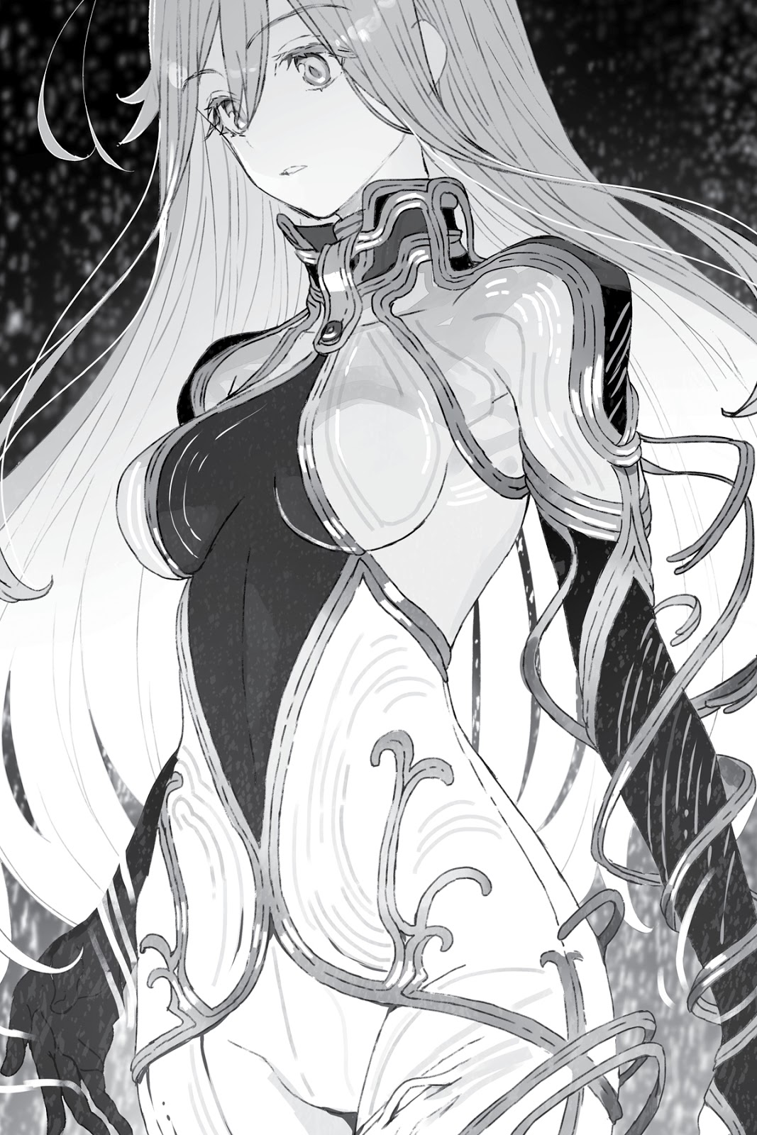 Sensor komposit yang dipasang di lingkar luar kanopi di tingkat alas tertinggi masih berfungsi. Personel komando mengamati pemandangan berpendar dari pemandangan bersalju di depan mereka dengan ekspresi tegang. Prosesor berdiri diam dengan warna biru bajaseragam, begitu pula gadis berambut perak berpakaian biru Prusia yang menjabat sebagai tuan mereka.