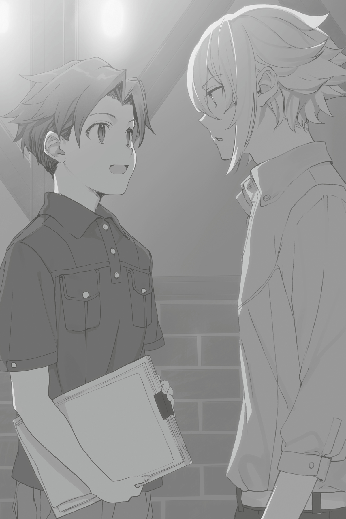 Theo berjalan melalui koridor ini sendirian setelah lampu padam. Dia bertemu dengan Rito, yang meninggalkan apa yang tampak seperti kantor dengan seikat buklet kertas tipis di bawah lengannya.