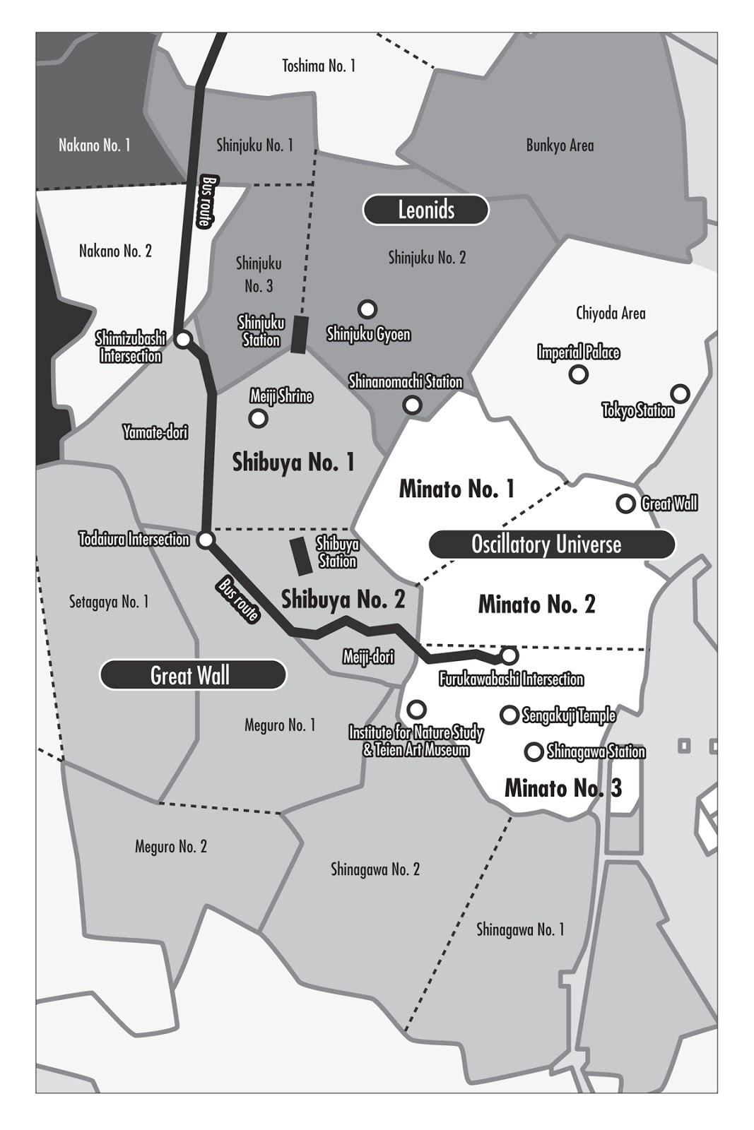 Begitu bus melintasi Jalur Keio Inogashira, bus itu melewati Yamate-dori tua, tergelincir di bawah jalan tol no. 3, dan mendekati tepi selatan area Shibuya. Tiga kilometer lagi sampai perbatasan dengan Area Minato No. 3. Waktu kedatangan diantisipasi dalam tujuh menit.