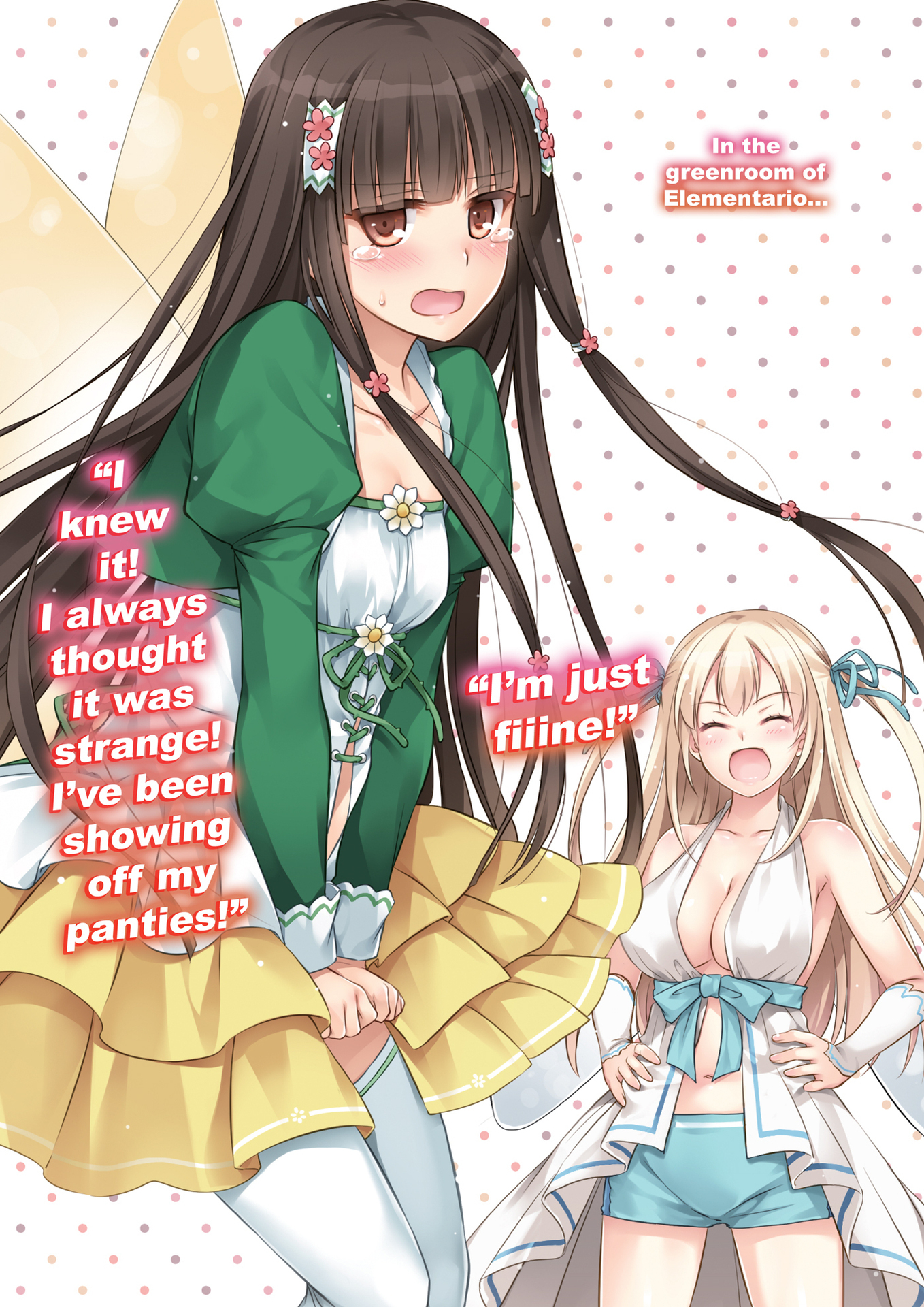 Muse dan Salama membentak dan meraih leher Macaron. Butuh sekitar tiga menit bagi Kobory dan Sylphie untuk menarik mereka darinya. Di sela-sela kesulitan bernapas, Macaron membuat segalanya menjadi lebih rumit dengan mengaku bahwa itu adalah orang tertentu yang menyembunyikan celana ketat di tempat yang sulit ditemukan, dan bahwa orang ini adalah Peri Bunga, Tiramii.
