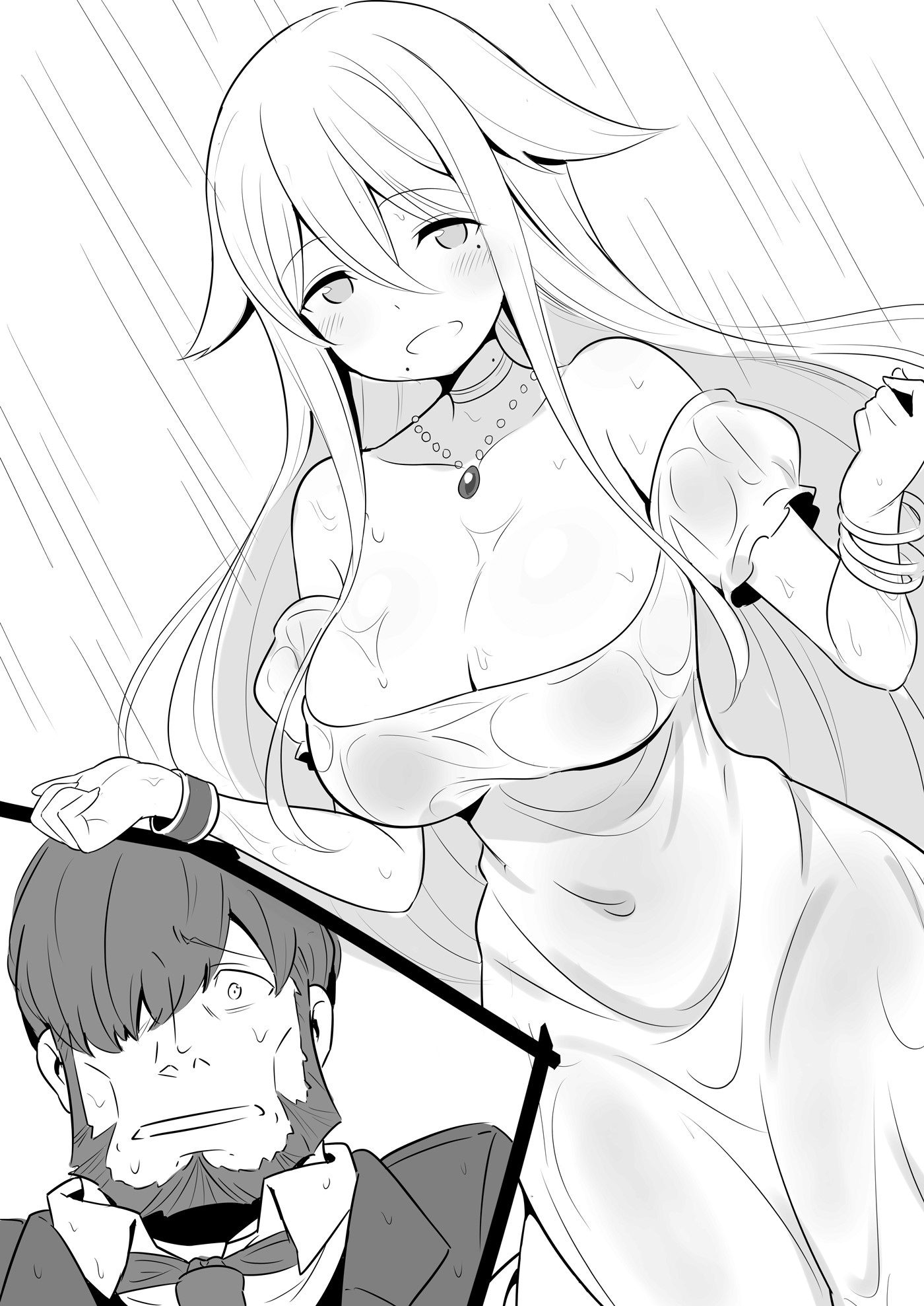 Wanita itu sangat cantik sehingga Shouzou meragukan matanya sejenak. Rambut peraknya meneteskan hujan, dan gaun one-piece tipis putih menempel erat di tubuhnya. Payudaranya yang melimpah terlihat jelas, dan segera jelas bahwa dia tidak mengenakan pakaian dalam.