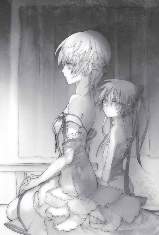 Terkejut, Enju berbalik ke sisinya. Seorang gadis ada di sana, mengenakan rok bergaris-garis horizontal dan jaket pendek, membuatnya tampak seperti seorang aktris dari beberapa dekade yang lalu. Dia pasti gugup, karena dia memutar-mutar ibu jarinya di belakangnya seperti dia menyembunyikan sesuatu dan menggosok-gosokkan kedua kakinya, senyum yang muncul sendiri dari balik ikalnya yang halus. Senyum itu pastilah yang ia gunakan untuk menjaga agar orang-orang tidak mengira ia semacam orang aneh, tetapi Enju tahu bahwa ia juga memiliki sifat pemalu.