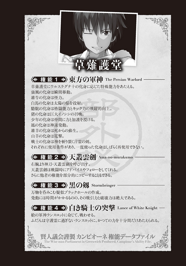 Seseorang yang membunuh dewa, dan merebut otoritas mereka disebut Campione.