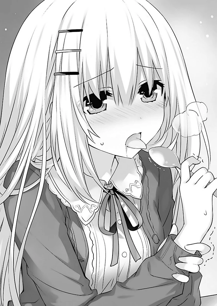 Alasannya sederhana. Shidou telah menemukan adegan Origami memegang sendoknya dan menjulurkan lidahnya ke sana dengan ekspresi yang sangat cabul.