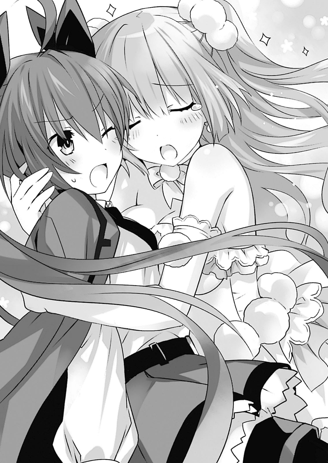 Wajah Kotori memerah. Mungkin karena mereka melihat itu, Kaguya dan Yuzuru yang menahan Shidou, membuat senyum masam.