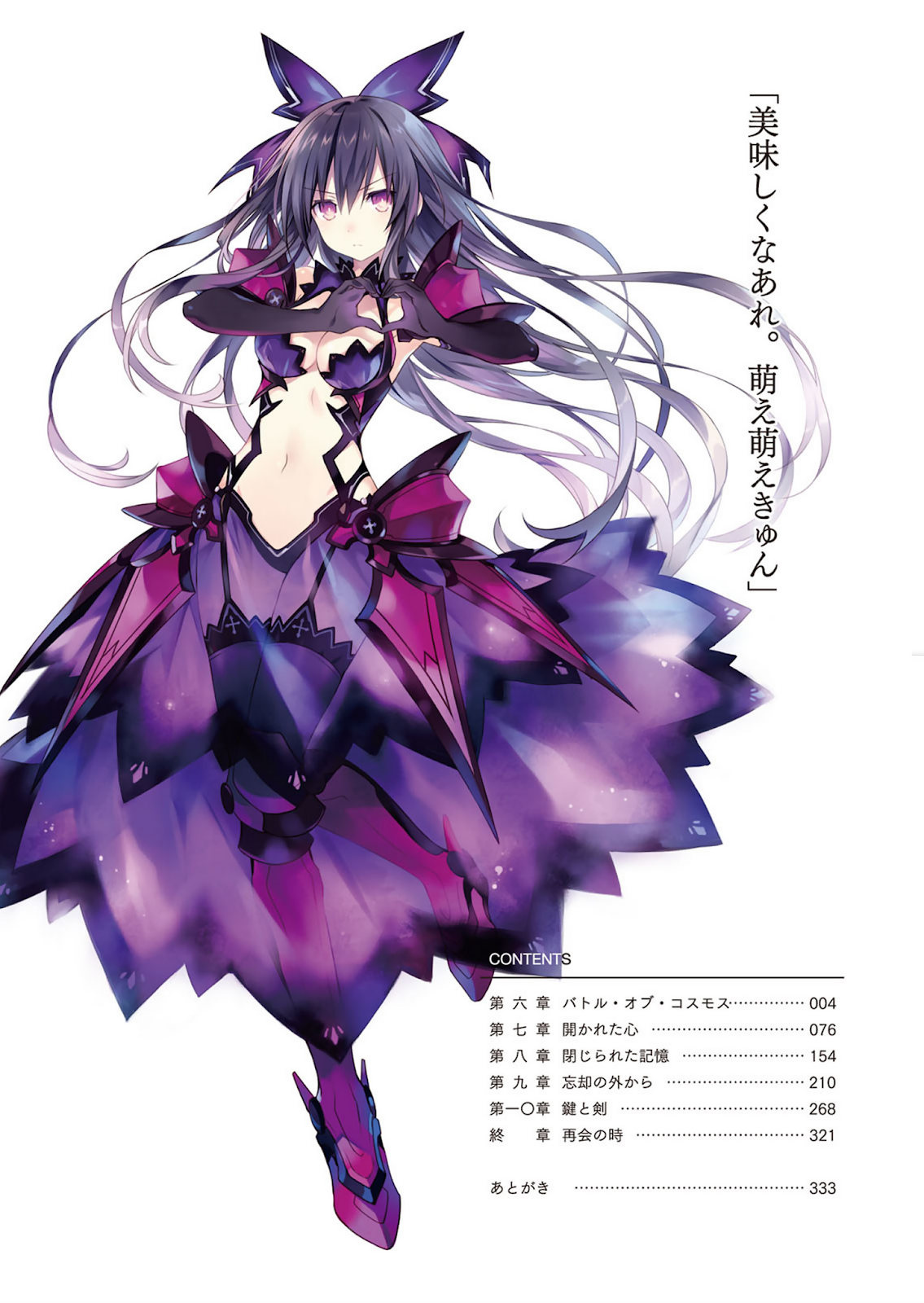 Mukuro, Hoshimiya Mukuro. Dia membisikkan nama Roh yang menyedihkan itu. Seorang gadis muda, dengan rambut emas tergerai yang lebih panjang dari bingkainya dan gaun bertema konstelasi yang berkibar dengan perawakannya yang ramping, dengan lembut melayang di depan Shidou. Emosi tidak, atau sudah berhenti, ada di wajah polosnya. Sepasang mata emasnya yang indah masih melihat segala sesuatu di dunia tanpa sedikit pun ketertarikan.