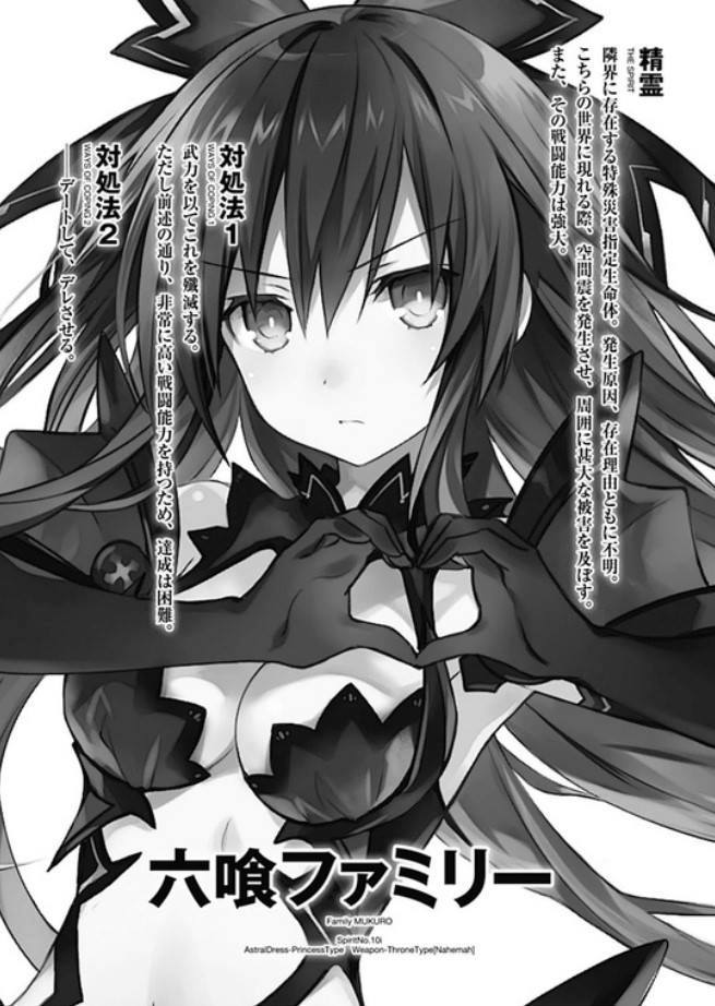Tentu saja, itu tidak berarti sebaliknya. Tepatnya, Mukuro sama sekali tidak menunjukkan emosi apapun terhadap Shidou, baik itu kebencian atau kebaikan. Tindakan tidak ekspresif ini hanya bergantung pada perasaan bawaannya untuk melenyapkan penyusup di wilayahnya. Suasana hati yang tidak normal membangkitkan kata boneka dalam benak Shidou.
