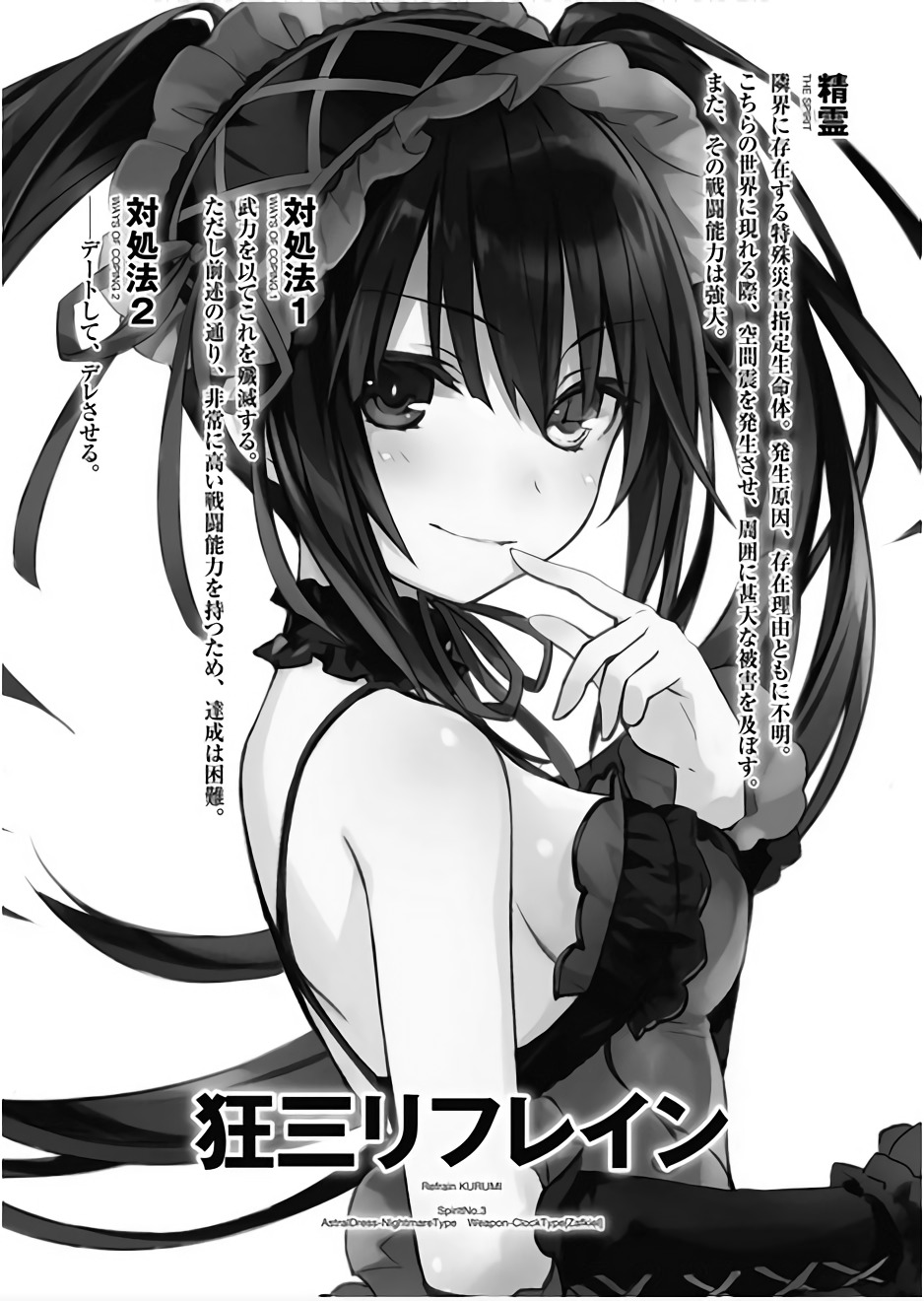 Tokisaki Kurumi adalah seorang gadis muda yang baik hati, dan mereka yang mengenalnya juga memujinya. Lahir dari keluarga kaya, dia adalah Ojou-sama sendok perak yang dibesarkan dalam telapak tangan orang tua yang menyayanginya. Dia tidak pernah dipaksa untuk menghadapi batasan dalam kebebasan atau ketidakpuasan apa pun di masa kecilnya; dan karenanya, tujuh belas tahun hidupnya berlalu begitu saja.