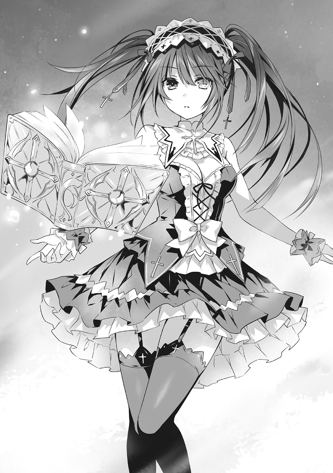 Kurumi menatap ekspresi rumit Kotori bersama dengan sikap Spirit dan terkikik, lalu dia mengangkat tangan kanannya dengan lembut.