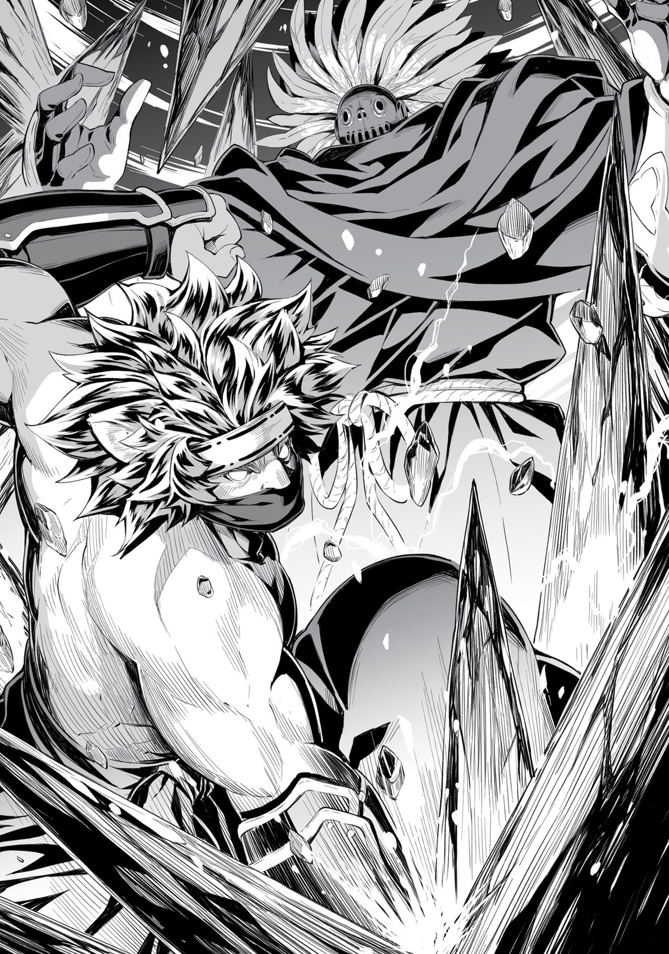 Dia menempelkan sarung tangannya, lalu menghancurkan kedua tinjunya ke tanah. Lantai di bawahnya merobek terbuka, dan paku batu berbentuk taring mulai merobek aula menuju pasukan yang mendekat.