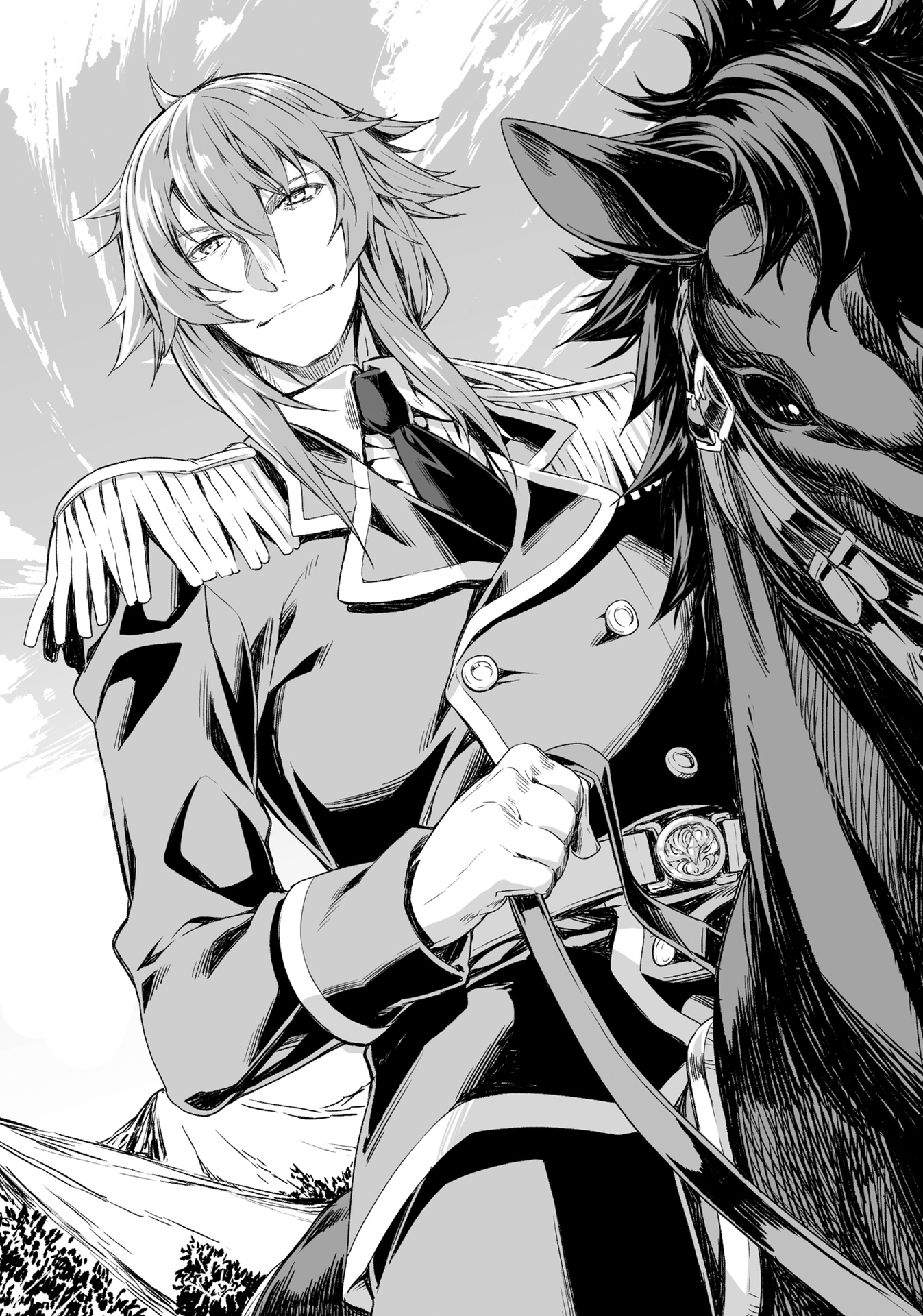 Di depan formasi, seorang pria muda duduk di atas kuda hitam yang indah, memimpin pasukan berkuda tiga puluh orang. Pria itu memiliki hidung yang menonjol dan rambut coklat kemerahan yang tidak dijahit. Dia mengenakan seragam militer yang pas bentuknya, jauh lebih agung daripada rekan-rekan prajuritnya.