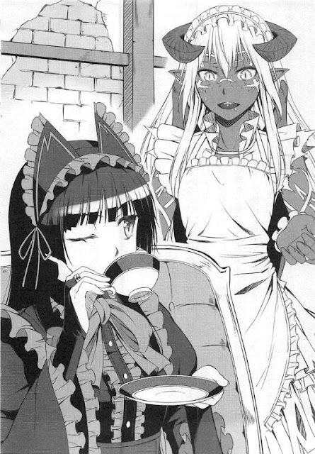 “Jadi ini yang Nihonjin sebut sebagai kafe gothpray, aku terkejut. Nah, itulah Komunitas Hidup Arnus untuk Anda; mereka telah membawa mode Nihon. Bagus sekali untuk mendapatkan seorang gadis Dragonkin untuk mengenakan pakaian gothic putih. ”