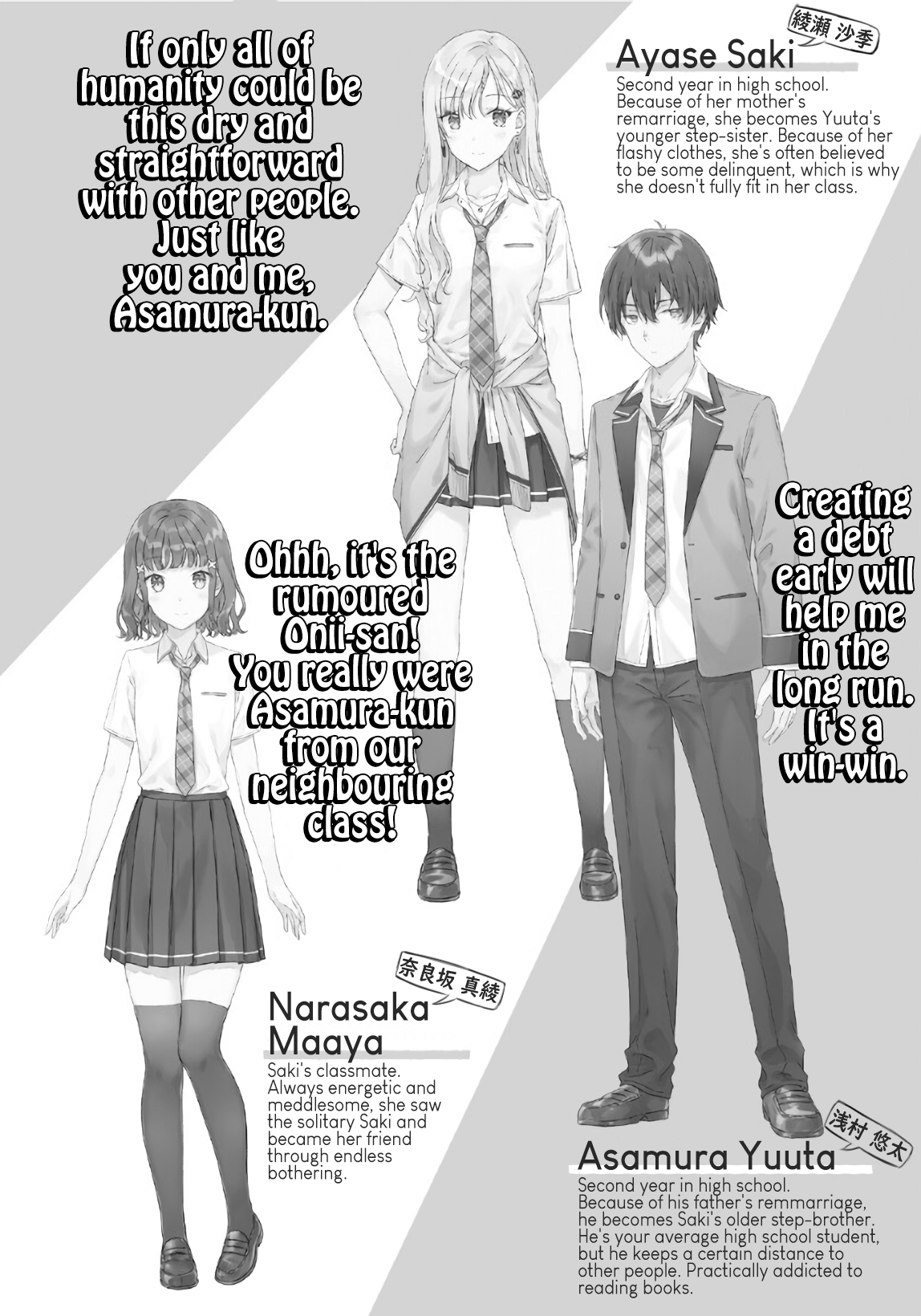 Nama saya Asamura Yuuta. Saya rata-rata berusia 17 tahun, tahun kedua di sekolah menengah. Jika seseorang bertanya kepada saya mengapa saya akan mendapatkan saudara perempuan tiri pada usia seperti itu, maka itu hanya karena orang tua saya terlalu ‘bersemangat’ untuk kebaikannya sendiri. Aku hanya bisa menghormatinya dari lubuk hatiku yang terdalam untuk menikah lagi di usianya yang kokoh.