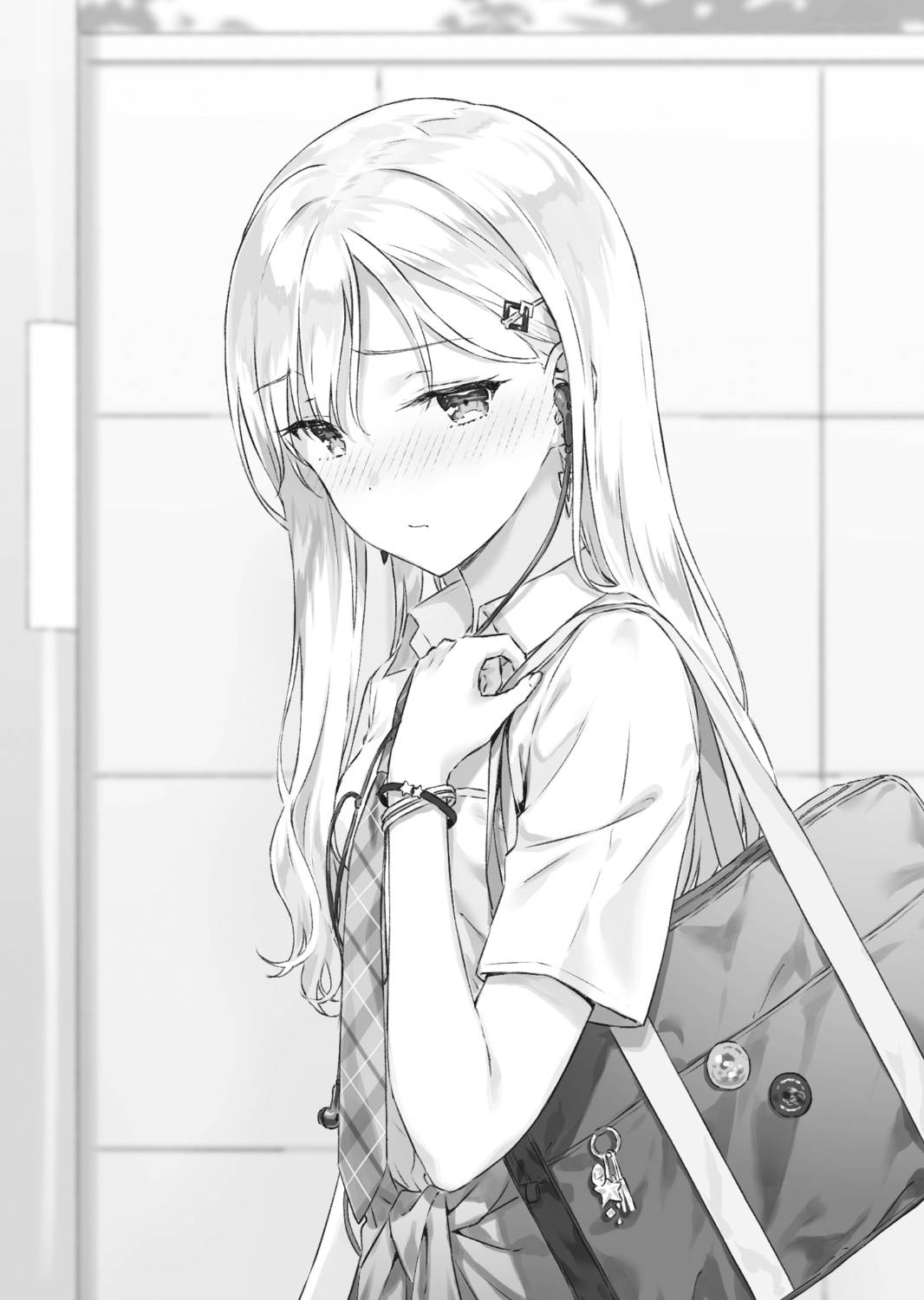 Ramalan cuaca hari ini menyatakan bahwa kemungkinan hujan adalah 60%, dan di bawah langit mendung, saya berjalan dengan cepat, ketika pandangan saya berhenti pada satu titik. Di tengah orang-orang yang menunggu di lampu merah perempatan, rambut pirang berkilauan melesat tepat ke mataku — Ayase-san. Aku bahkan bisa tahu dari punggungnya.