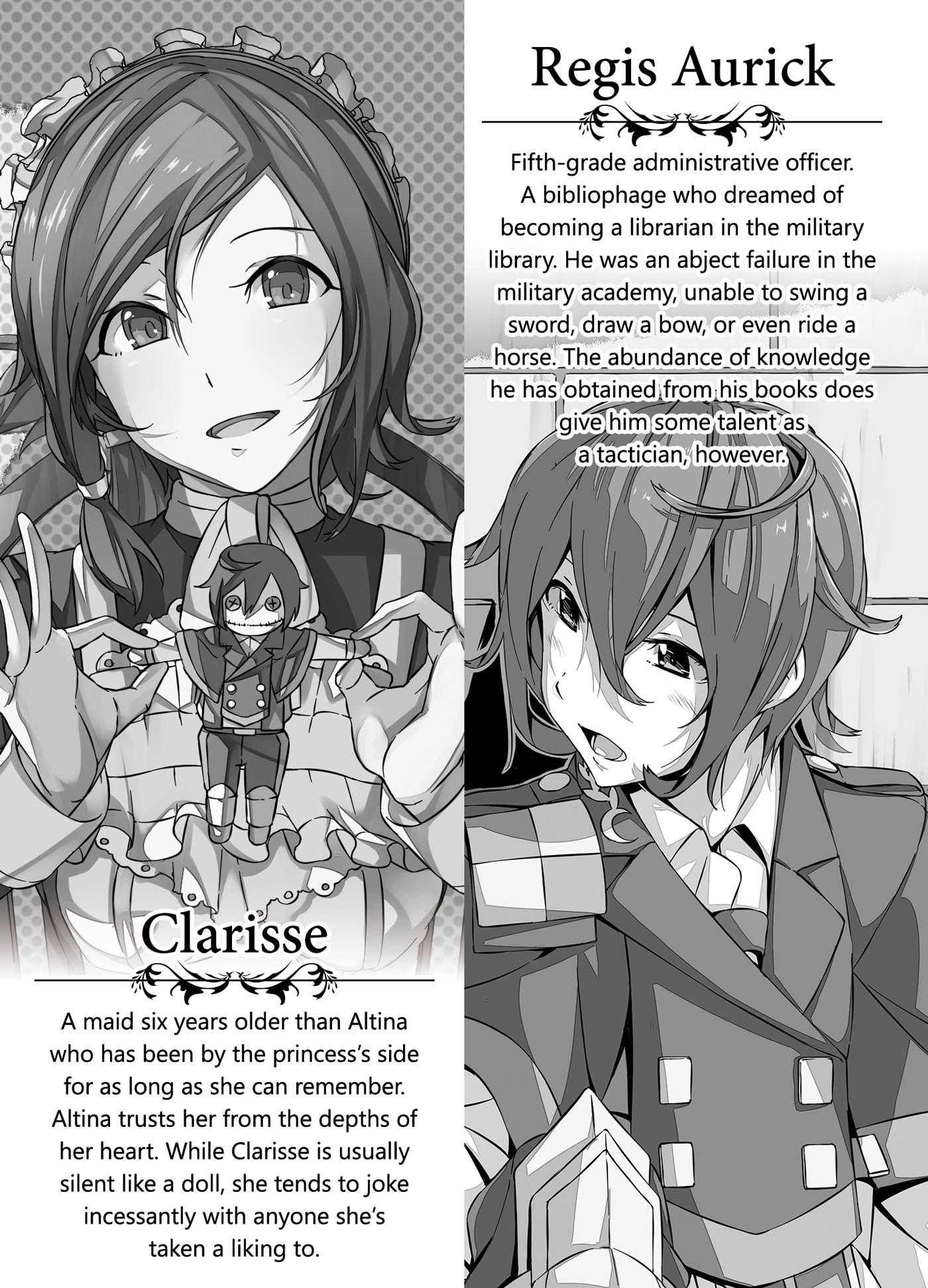 Pembantu Altina, enam tahun lebih tua darinya, telah ada selama yang dia bisa ingat. Seorang pelayan normal tahu untuk melakukan yang terbaik untuk tidak membuat tuannya tidak senang, menjaga ucapan mereka seminimal mungkin dan menjaga jarak sejauh mungkin. Tapi Clarisse orang yang aneh. Dia sepertinya selalu bercanda, meski hanya saat mereka berdua sendirian; saat ada orang lain di sekitarnya, dia kembali memainkan peran sebagai pelayan biasa.