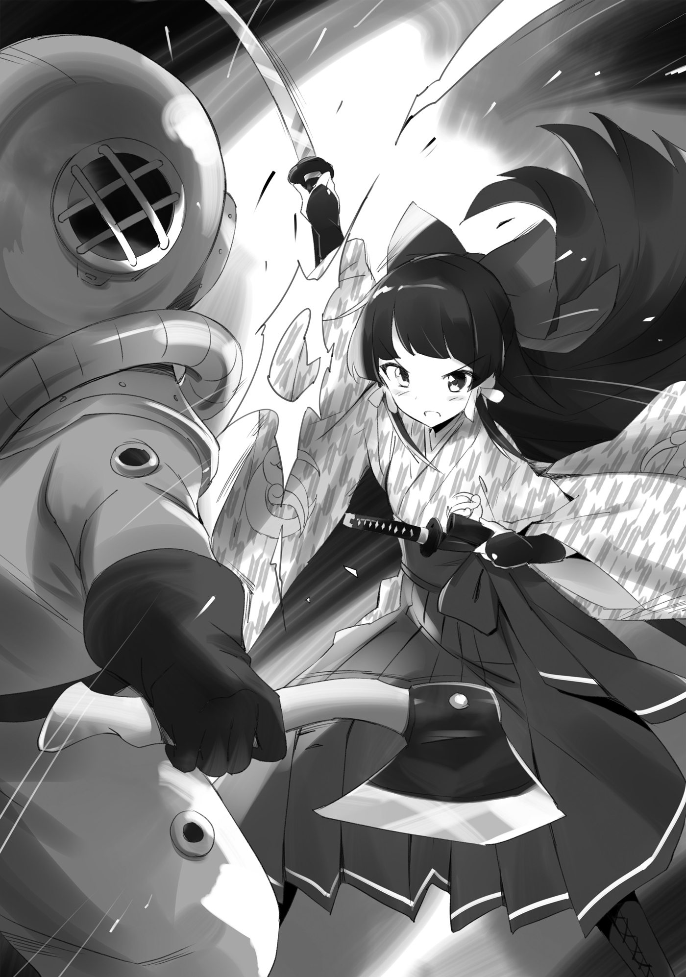 Yakumo membuka portal tepat di sebelah orang yang mengenakan pakaian selam, tetapi menemukan serangan tiba-tibanya terhalang oleh kapak yang ditarik keluar dari pinggang musuhnya.