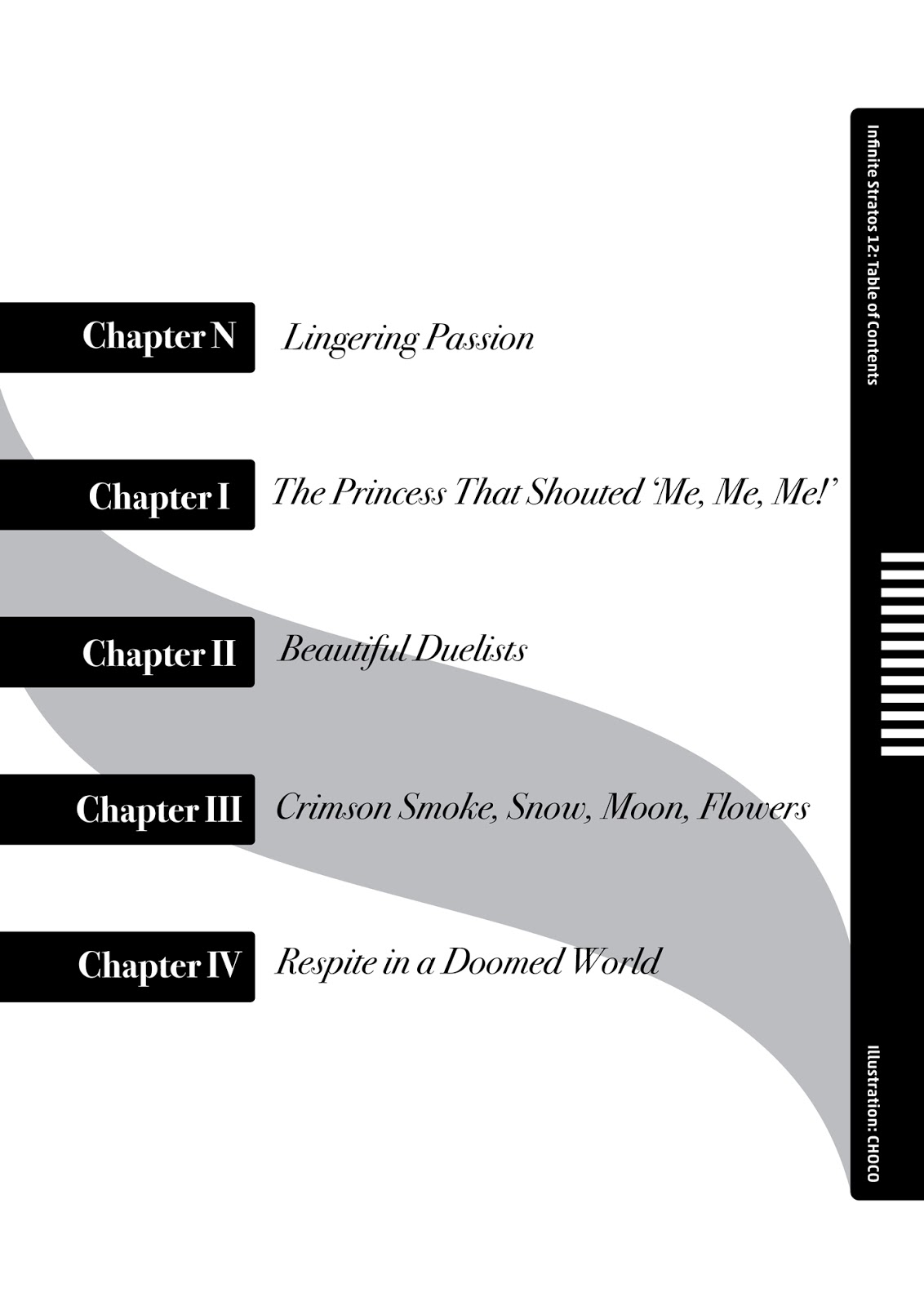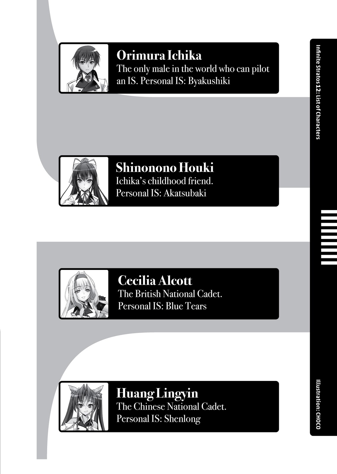 Asrama tahun pertama Akademi IS. Kamar Cecilia. Dan teman sekamar yang sangat kesal, Kisaragi Kisara. Dengan tempat tidur Cecilia yang menempati sebagian besar ruang lantai, dia sudah harus kembali berlatih dari klub Pendaki gunung dan tidur di kantong tidur. Banyak ketidaksenangannya.