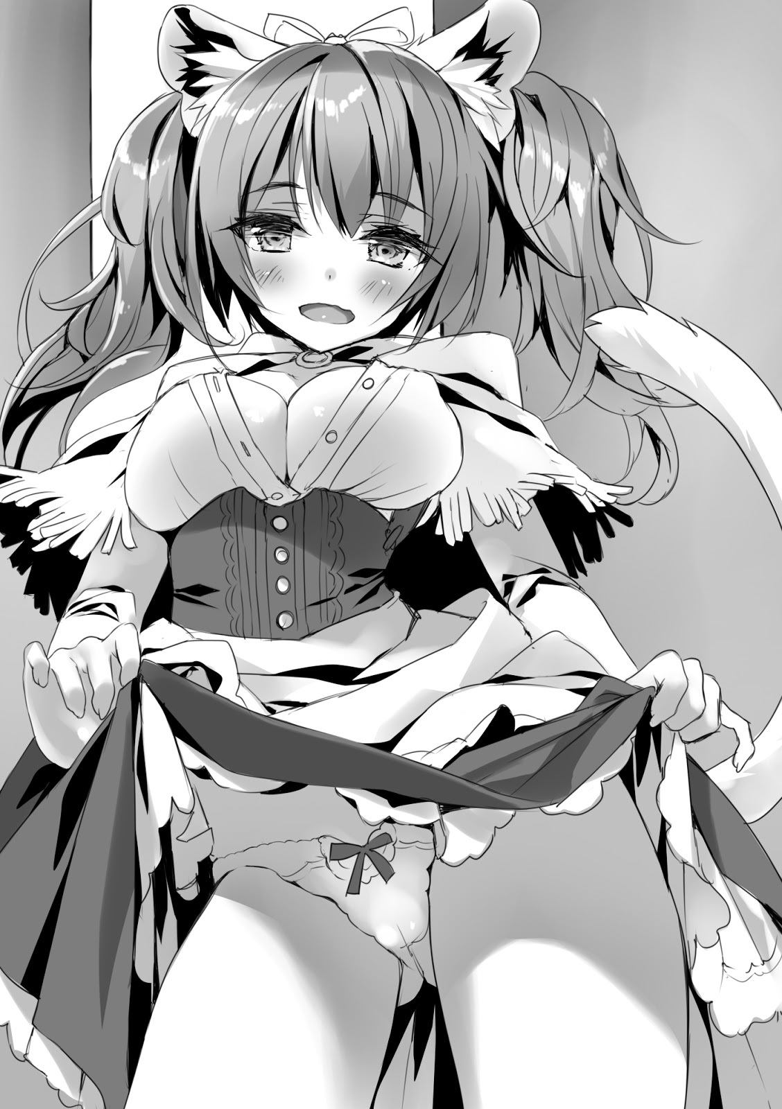 Diablo terkejut. Di bawah jubahnya ada pakaian yang terlepas dari kemurniannya sebelumnya. Itu adalah pakaian sensual yang sangat memperlihatkan belahan dadanya. Dia menatapnya dengan mata lembab, lidah merah mudanya menjilat bibirnya yang pucat. Dia menarik roknya dengan tangannya, memperlihatkan sepasang celana ungu.