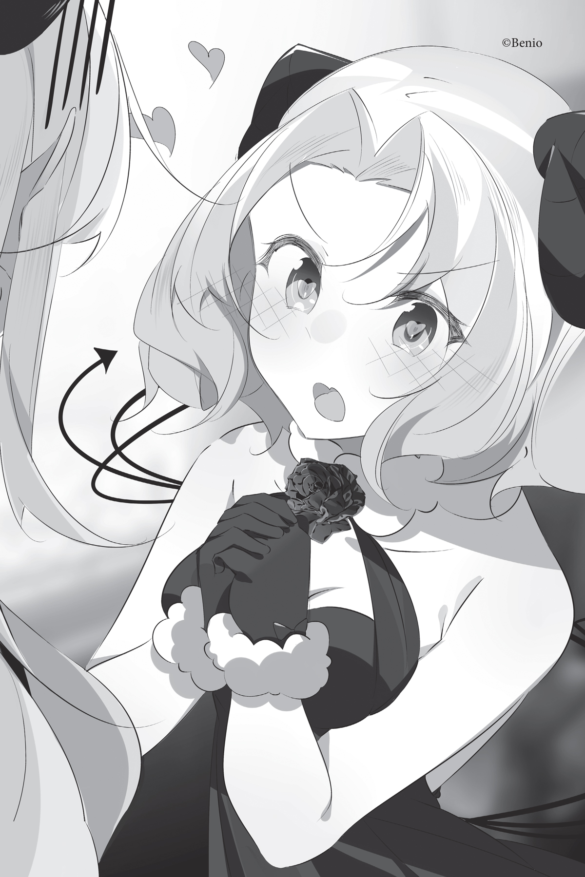 “Selamat datang!” Seorang iblis wanita muda menyambut kami.