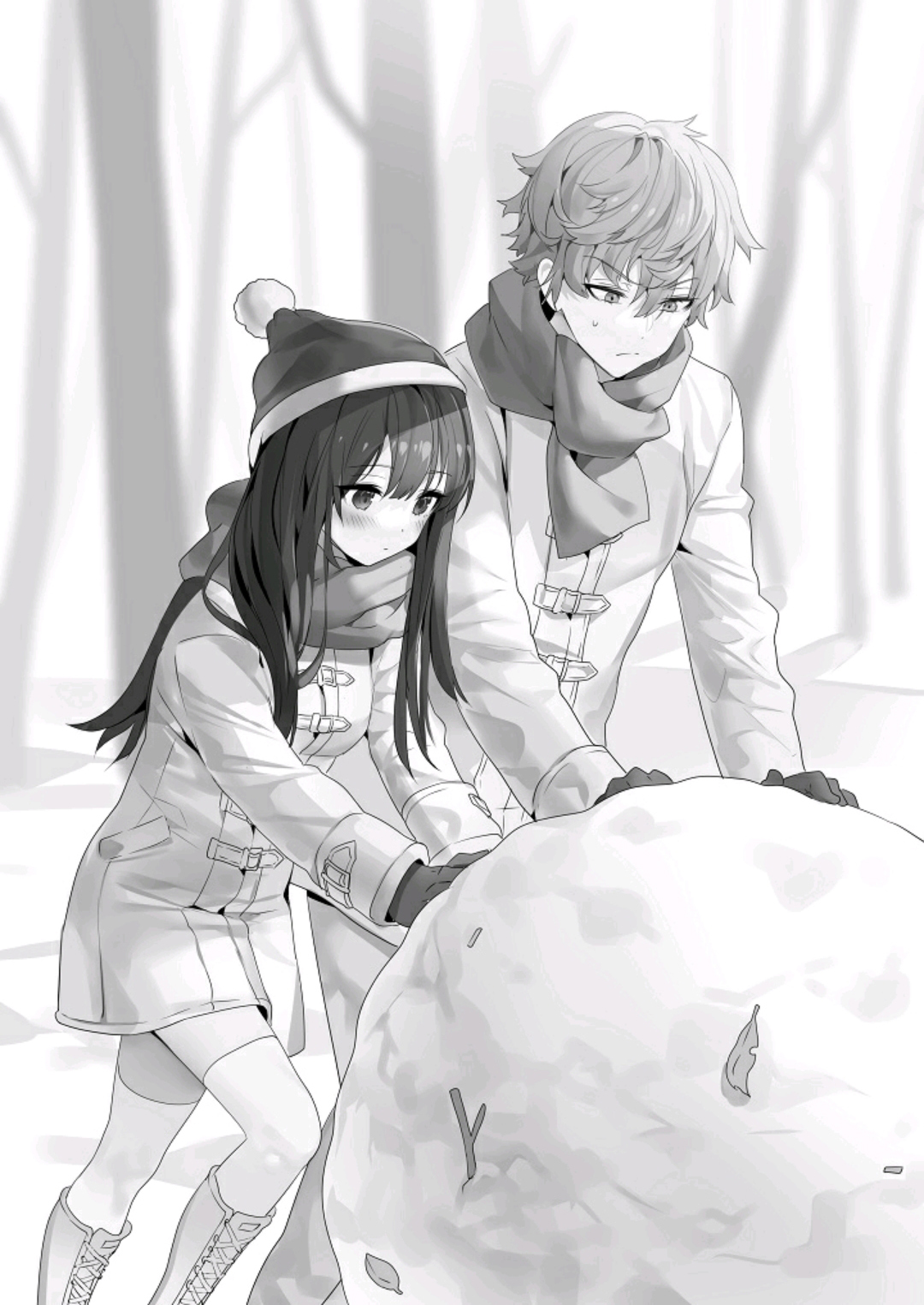 Ellen mengambil bola salju besar lainnya dan menaruhnya di bola salju yang ku gulingkan. Setiap kali aku melihat gadis ramping itu mengumpulkan begitu banyak kekuatan, aku sedikit tersentak. Sudah waktunya aku terbiasa.