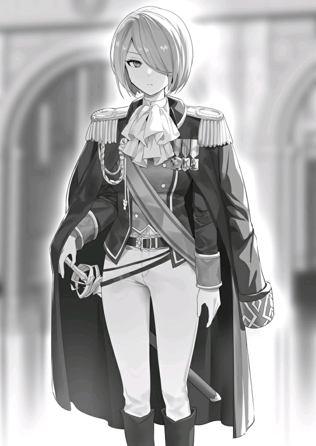 Ada seorang ksatria dengan postur seperti pedang mengenakan jubah Ksatria Kekaisaran berdiri di sampingnya.