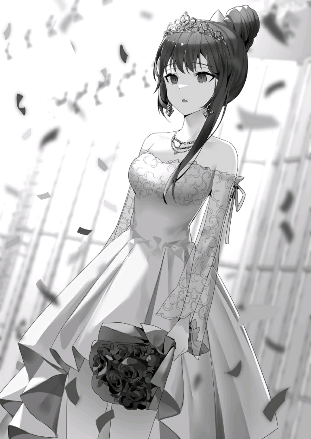 Di tengah tepuk tangan dan sorak-sorai, Ellen, mengenakan gaun putih saljunya, disajikan dengan mahkota dan buket bunga.