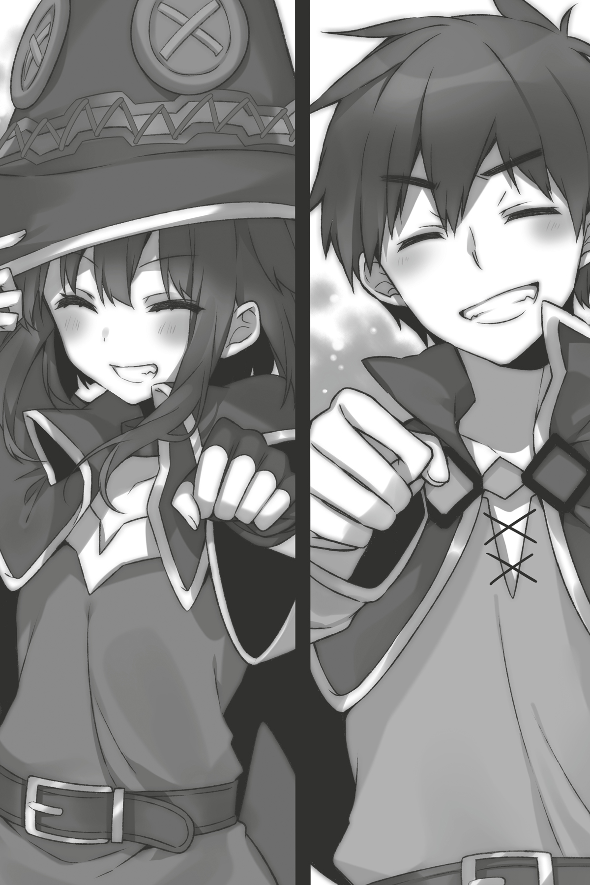 “Kau sedang berjuang untuk tetap berwajah datar, Megumin, dan kita berdua tahu itu! Dan, Kazuma, itu sudah cukup!”