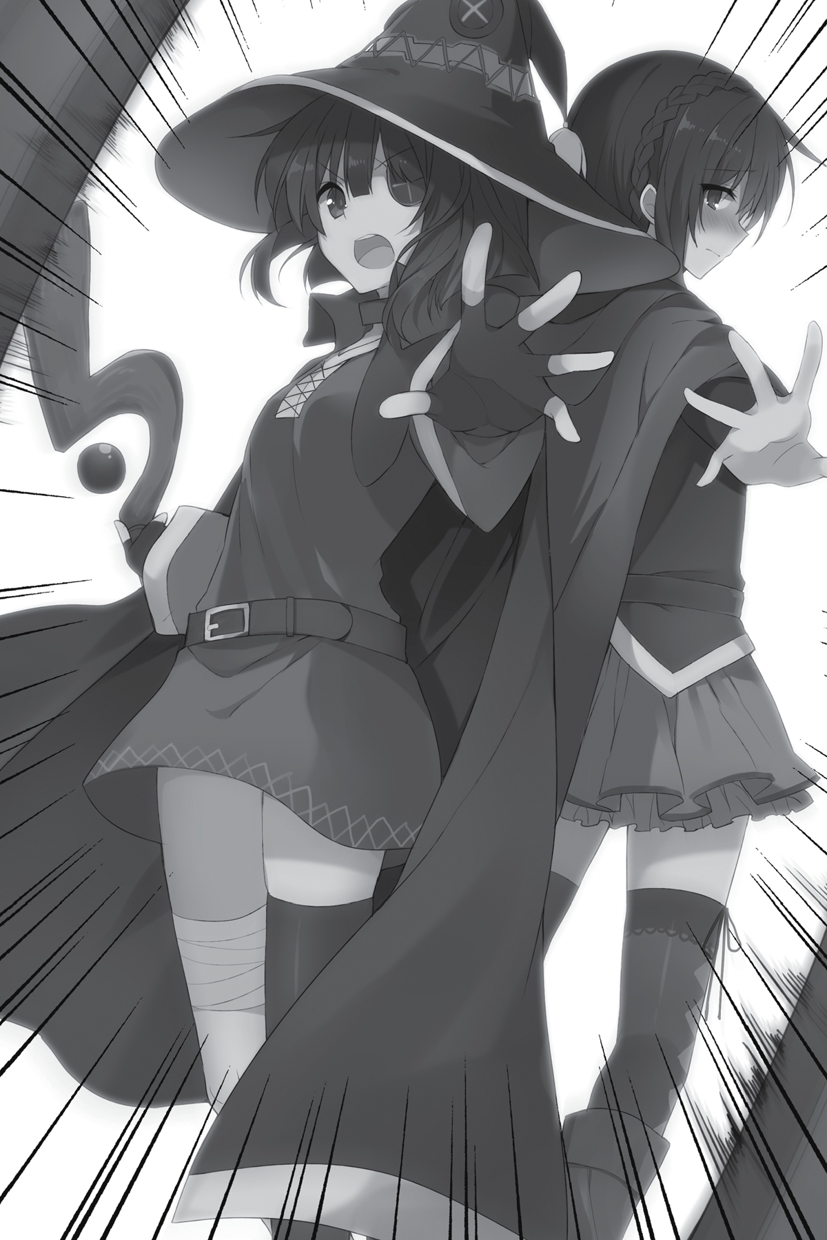 Megumin berteriak dari punggung Aqua, “Yunyun! Saya serahkan ini kepada Anda — kami akan melanjutkannya! Apapun yang terjadi padaku, jangan melihat ke belakang! ”