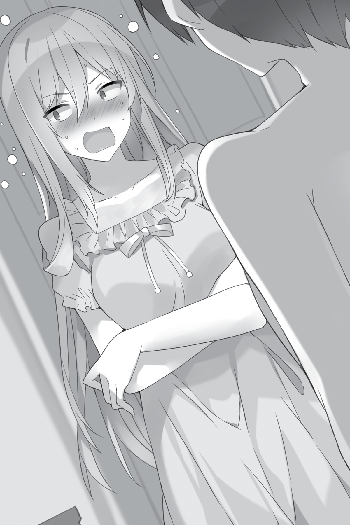 “Astaga! T-tunggu sebentar — apa yang kamu lakukan ?! Hentikan itu; kenapa kamu mencoba melepas pakaianku ?! Kamu terkadang melakukan hal teraneh! ”