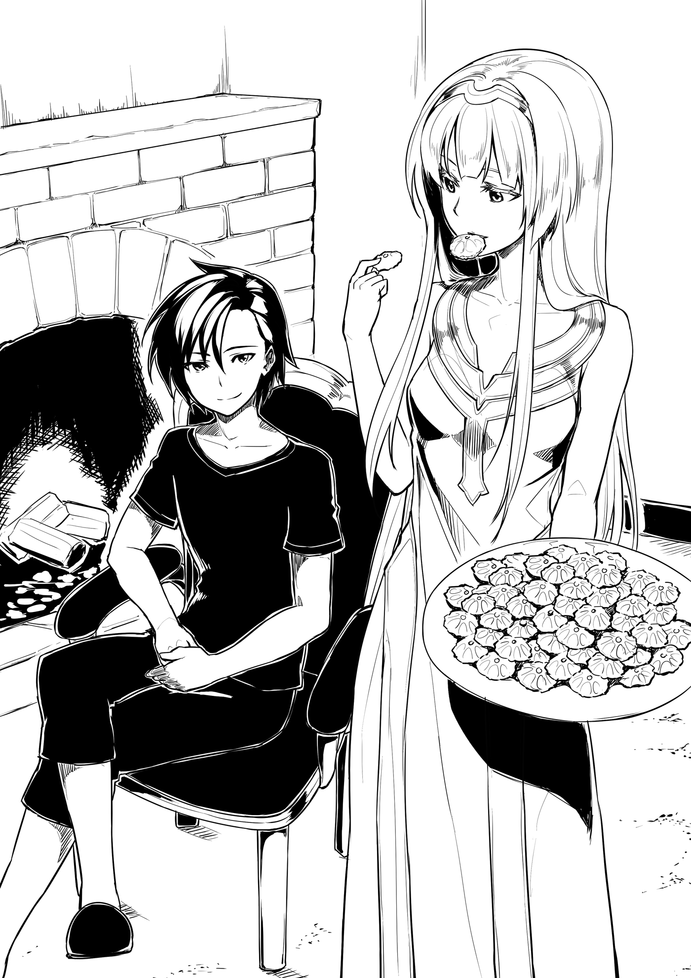 Saat aku memasuki kamar, gadis-gadis itu sudah duduk sendiri. Sofa itu memang cukup besar, tapi tidak ada cukup ruang untuk orang ketiga untuk duduk ketika mereka berdua melebarkan diri seperti itu. Sebelum aku menyadarinya, Alex muncul dari bayangan Rion dan meringkuk di depan perapian juga.