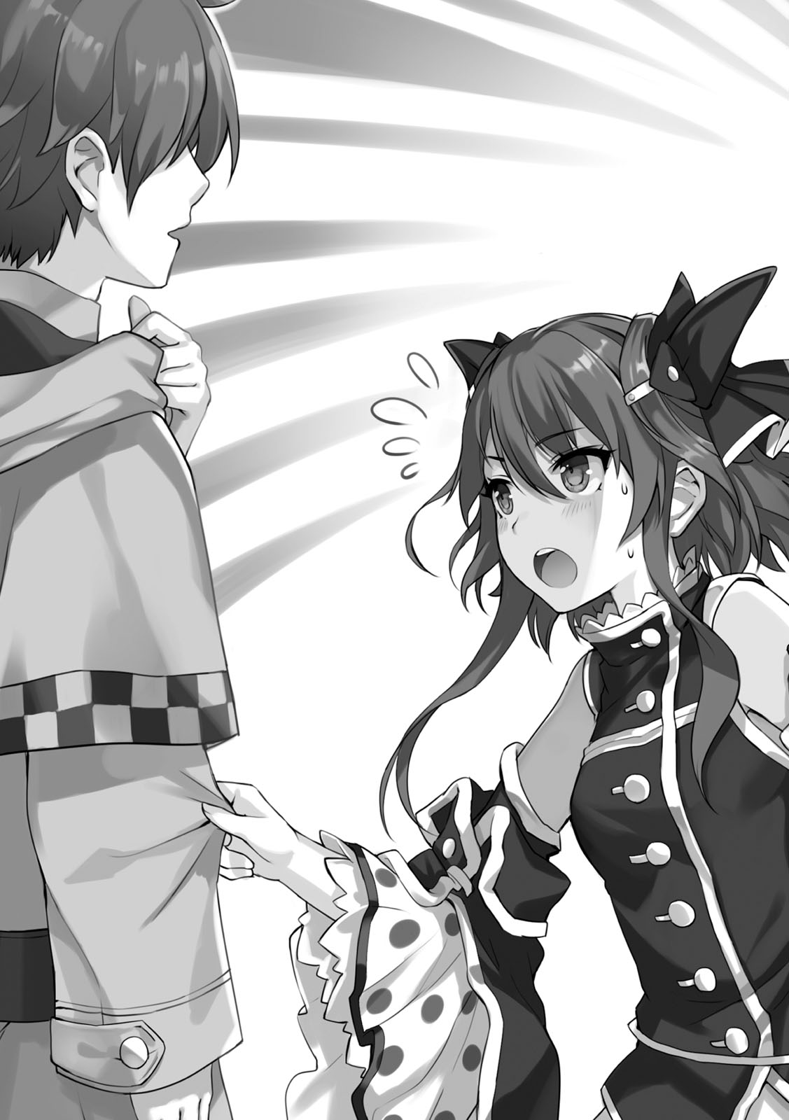 Pemuda itu melangkah menuju monster yang terbaring di tanah, mengulurkan tangan kanannya dan menyentuh rambut monster itu, dan memanggil orang lain—─── kepada gadis muda yang mengenakan pakaian berbintik-bintik hitam dan sedang menunggu di belakangnya.
