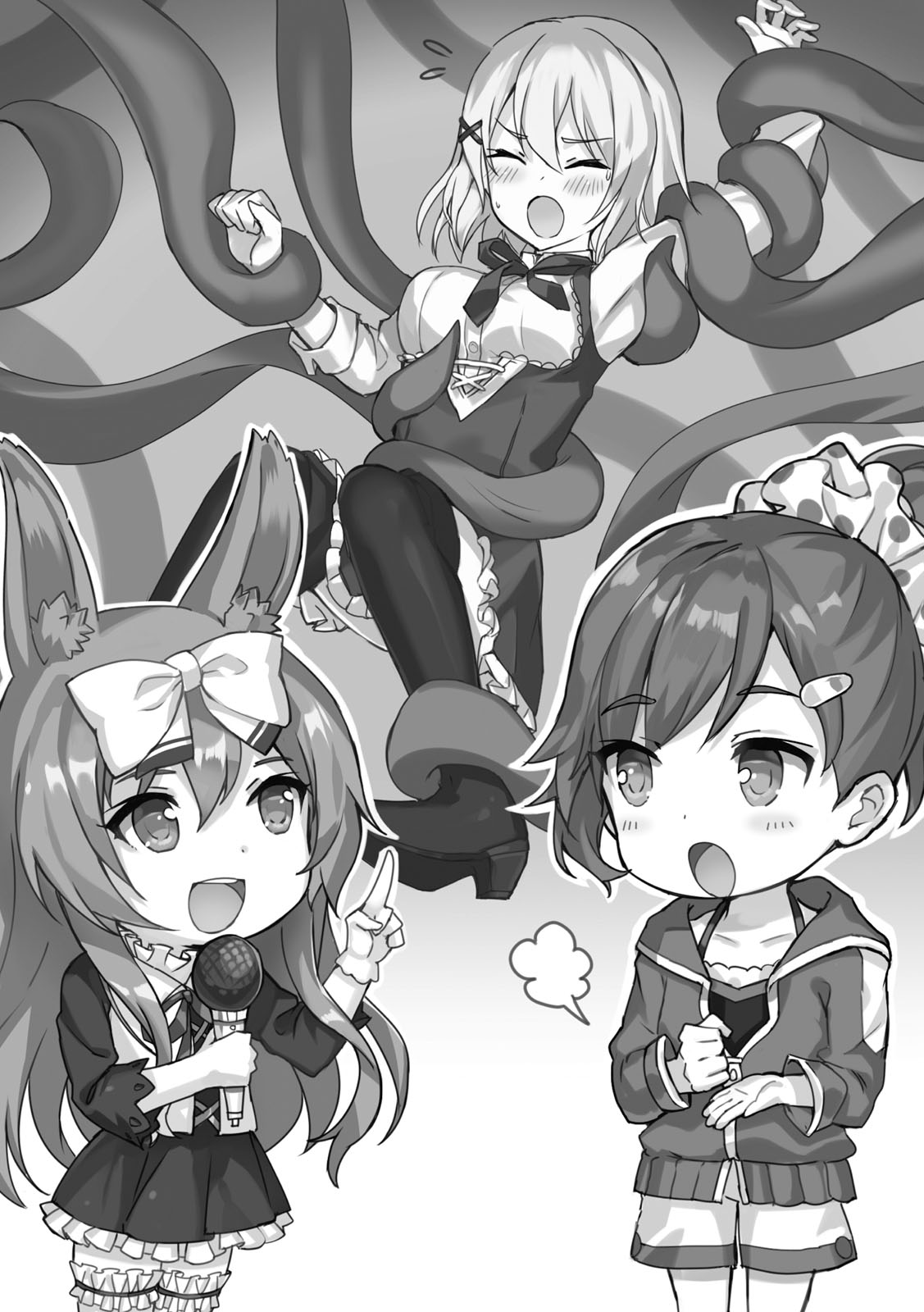 Ayato dan Suzuka menanggapi laporan Kuro Usagi. Usammi Kuro Usagi berkedut saat dia menjawab mereka.