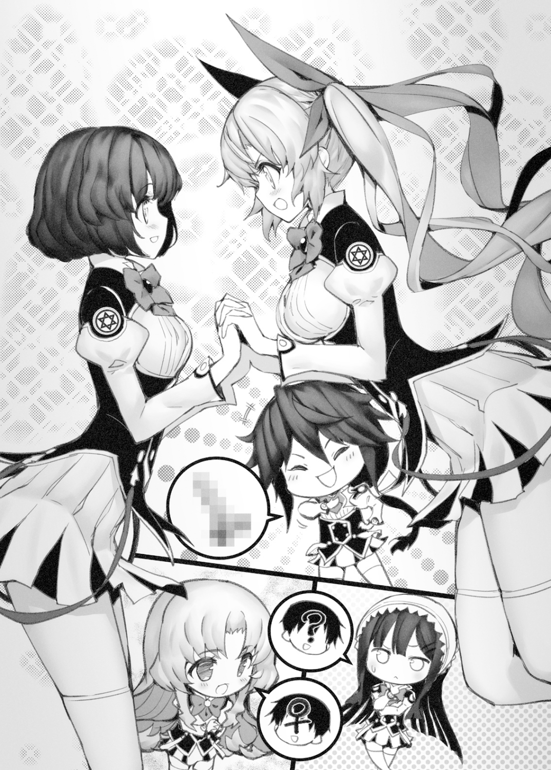Lotte meletakkan tangannya di bahu Kamimura-san dengan gembira dan memulai diskusi seperti “Jika Kazuki-oniisan adalah seorang wanita maka ……” “Ukuran payudaranya ……” dengan berbisik.