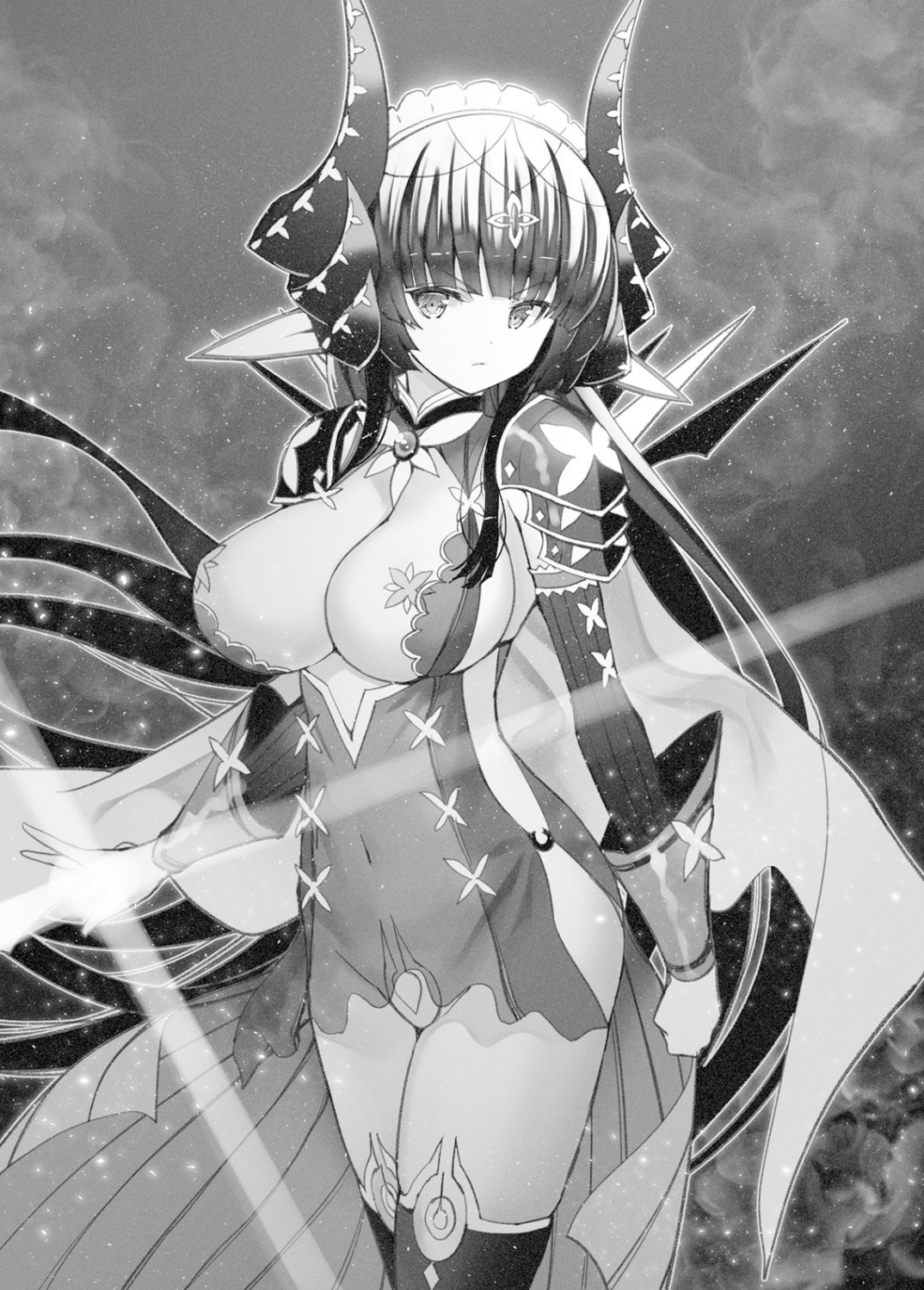 Setengah tubuh Ilyailiya yang hitam legam dipenuhi dengan kekuatan sihir gelap yang samar.