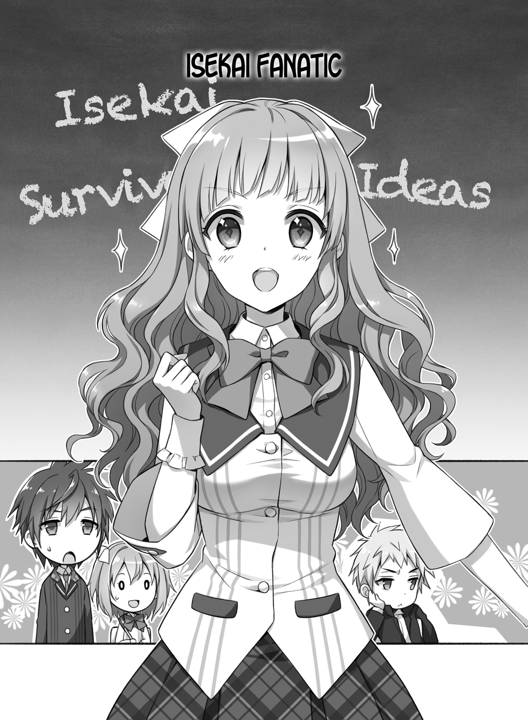 “Hmm? Kami akan bertukar pikiran tentang bagaimana cara bertahan hidup jika Anda berakhir di isekai. Dunia lain! Anda tahu, suka dengan perjalanan waktu, atau dimensi melompat! ”