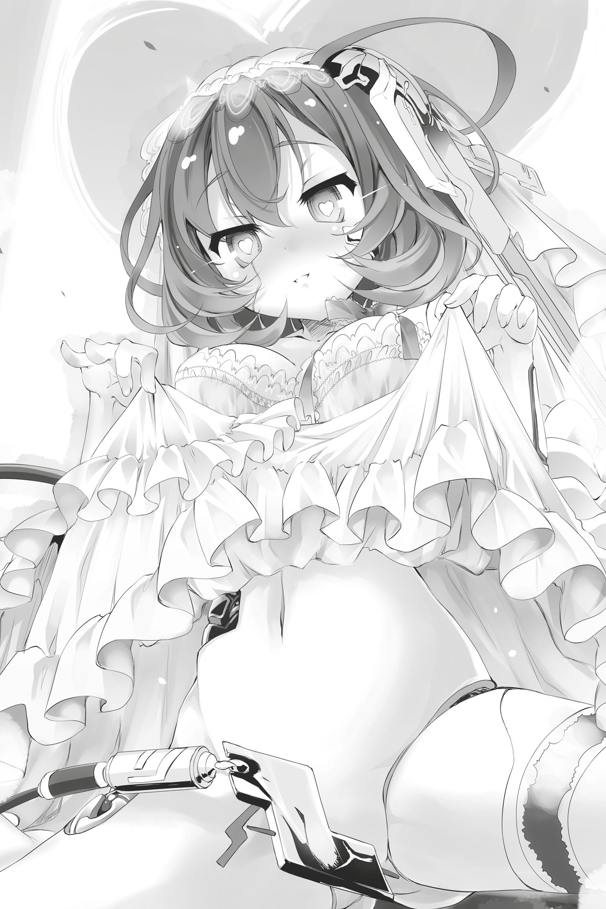Itu adalah seorang gadis seindah narcissus, bahwa “bunga di tengah salju.” Gaunnya berlapis rumit seperti mawar putih … mata iris mengintip dari balik kerudungnya. Wajahnya yang sederhana seperti porselen, dia berjalan perlahan ke arah kotak musik— Atau lebih tepatnya … itu adalah Emir-Eins, untuk beberapa alasan semuanya mengenakan gaun pengantin. Ngomong-ngomong, para penonton terpesona dan Sora dan Shiro sangat ketakutan ketika dia mendekatinya. Setelah penghormatan mendalam, dia mengucapkan kata-kata pertamanya: