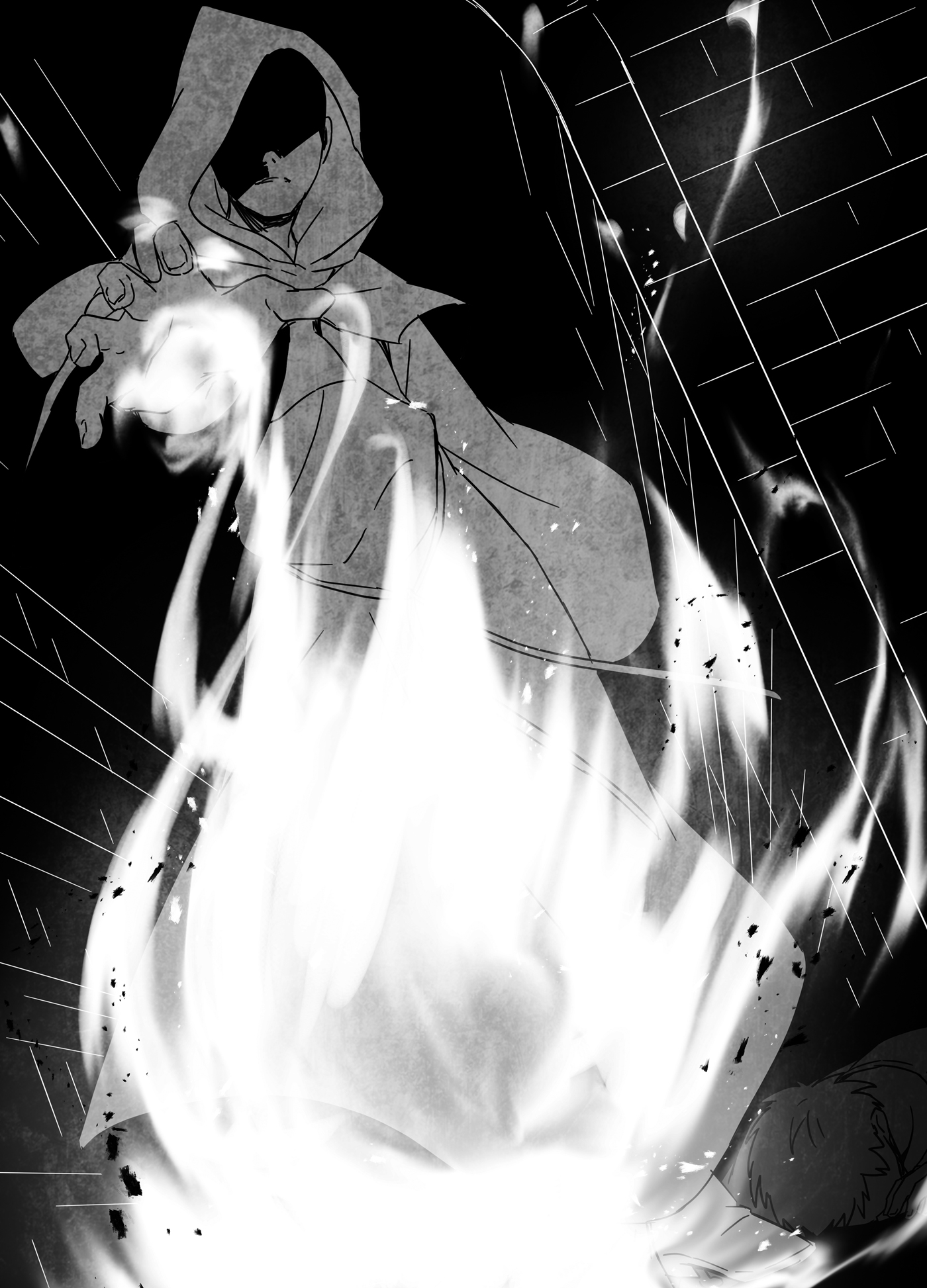 “Oh, tidak baik mengintip,” kata mereka sebelum menembakkan api dari tangan mereka dan membutakan mouse. Edel mengawasi dari tempat lain, tetapi bahkan dia merasakan kekuatan ledakan itu. Edel mengalami sakit kepala berdenyut-denyut dan jatuh pingsan di ruang bawah tanah panti asuhan.
