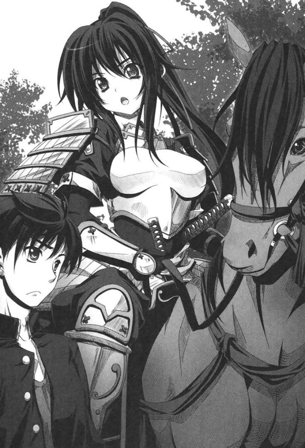 Sementara dengan tangkas menghindari ujung tombak. Yoshiharu menarik kuda itu.