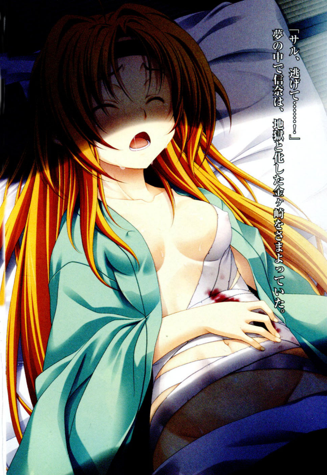 “…. Aku … melihatnya … diriku sendiri … Yoshiharu sudah mati …. Mitsuhide juga … aku takut ….”