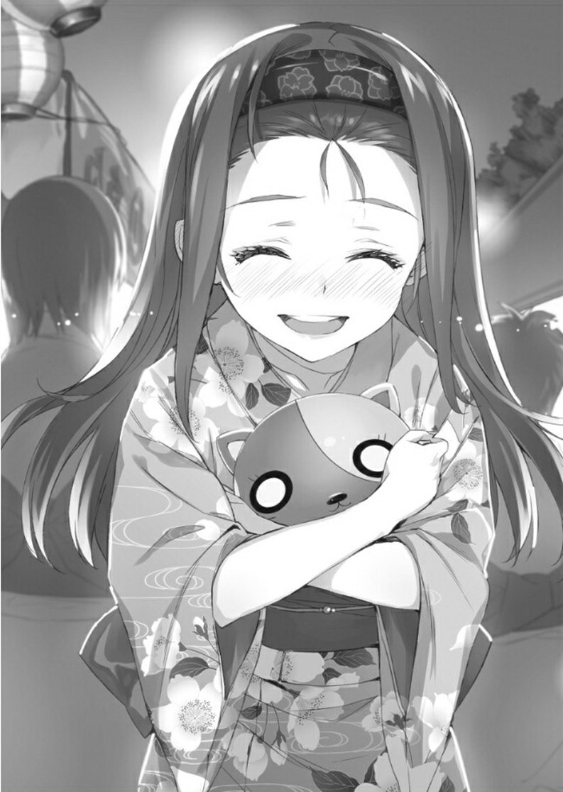 Setelah sampai di depan stasiun, Asunaro yang membungkus sabuk merah dengan yukata biru muda tiba. Ekor poni seperti biasa, tetapi anehnya terlihat seksi karena efek yukata.