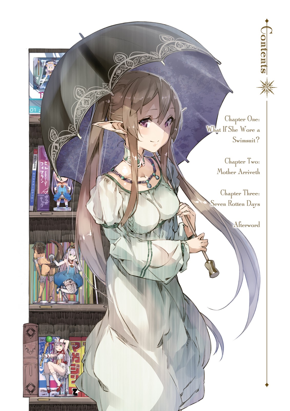 Elvia, tentu saja, juga mengenakan baju renang. Namun, bersamanya, itu berarti dia tidak terlihat jauh berbeda dari biasanya. Top tube standar untuknya, dan ketika dia berada di kamarnya sendiri, dia cenderung berkeliaran dengan pakaian dalam, jadi sepertinya ini bukan pertama kalinya aku melihatnya seperti ini. Tetapi tetap saja…