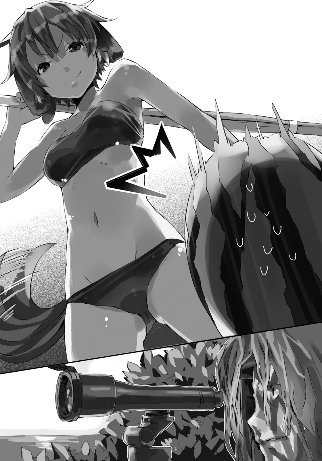 “Aku suka ketegasan itu,” Kapten Satou menyeringai. Dia mengambil uang kertas dua ribu yen yang saya keluarkan dan menukar saya untuk foto. Itu adalah hal yang mengkilap yang menunjukkan tubuh berbalut bikini Minori-san dengan sangat jelas.