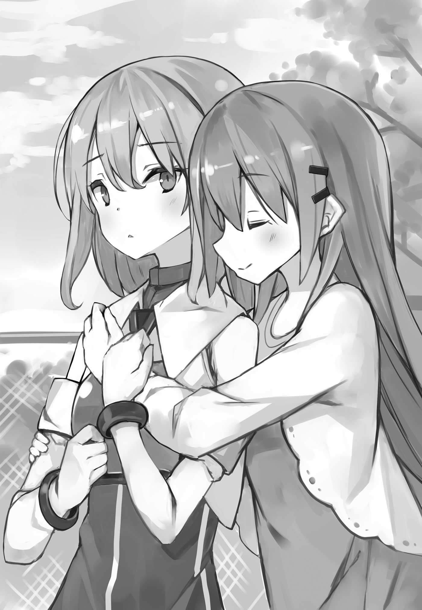 Pelukan Sanae membuat Maki keluar dari keadaan beku. Dia meletakkan tangannya di lengan Sanae di sekitar dadanya dan mendesah. Ekspresinya, perlahan tapi pasti, kembali normal.