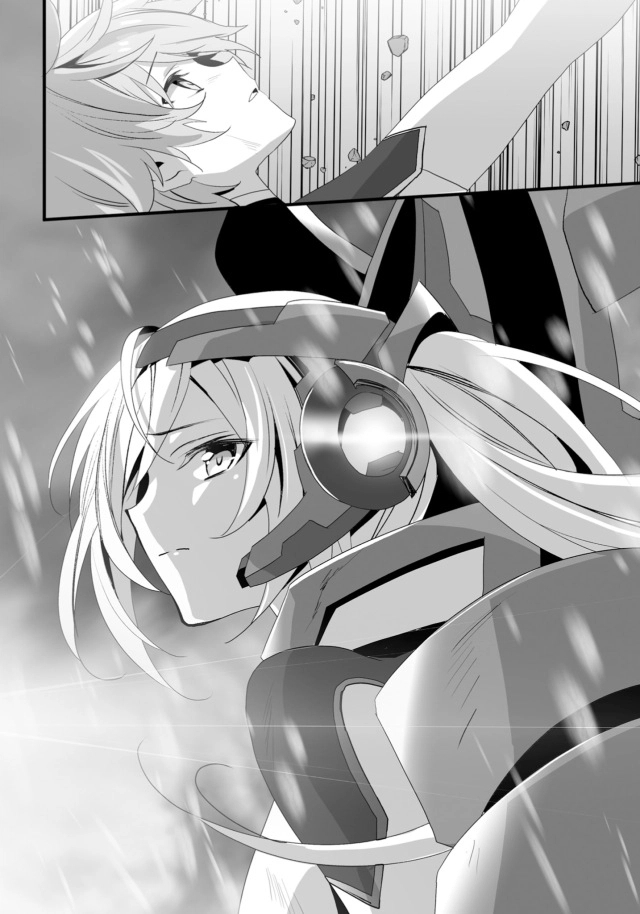 Saat dia menyadarinya, bayangan yang terbang dari hutan jauh di bawah──Lisha yang mengenakan Tiamat menebasnya dengan Pedang.
