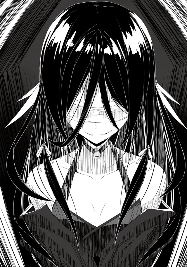 Seorang gadis berambut hitam terbelenggu, matanya ditutup matanya, dan tubuhnya dibalut pakaian asing yang belum pernah mereka lihat sebelumnya.