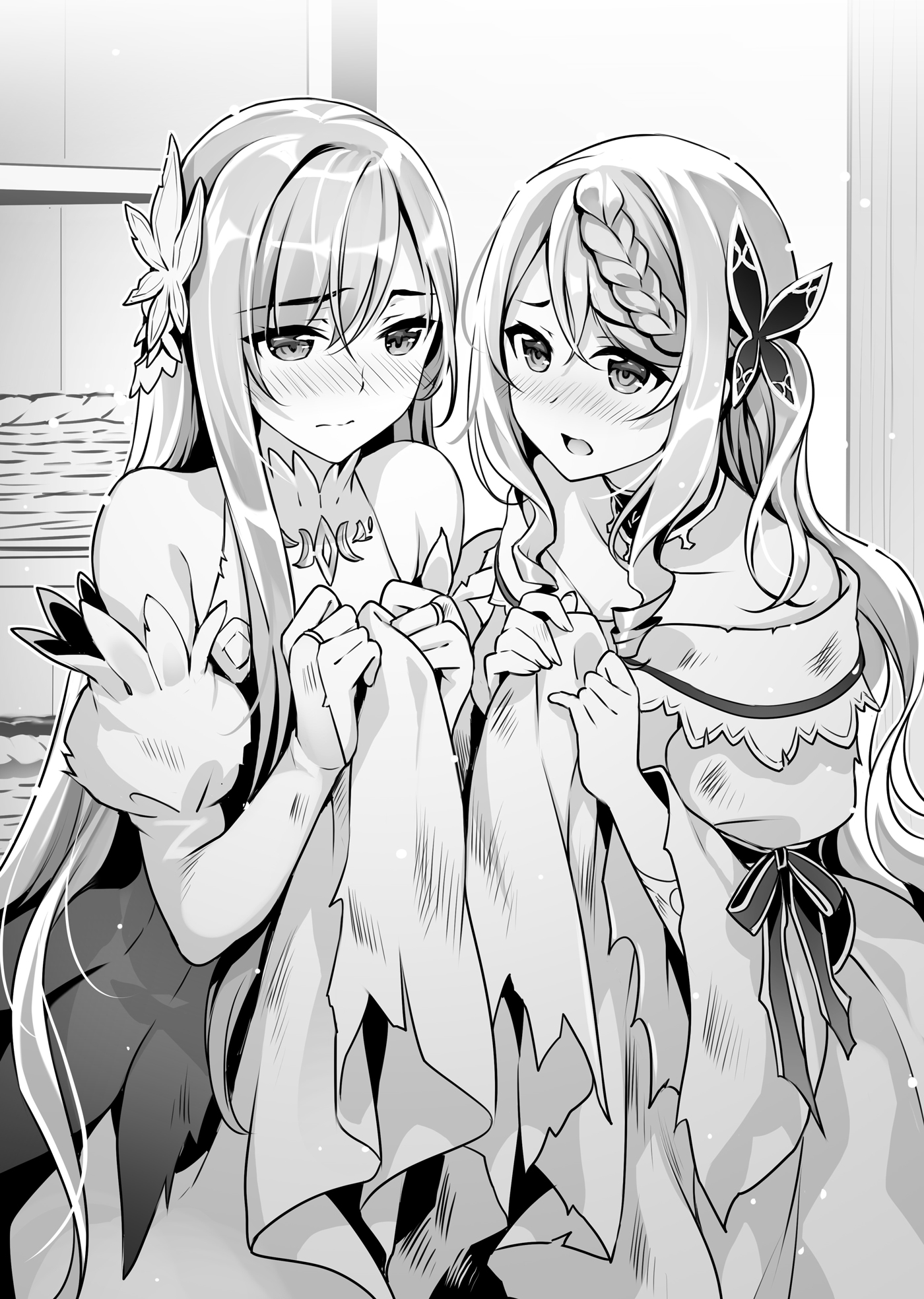 Dia memutuskan untuk meminjam dua gaun dari lemari. Gaun yang biasanya dia kenakan terlalu rumit untuk dikenakan, tapi gaun di lemari terlihat cukup sederhana untuk dipakai dengan mudah. Dia mengangkatnya ke tubuhnya untuk memeriksa ukurannya, lalu mengambil satu milik Sara dan satu milik Miharu. Ada juga slip, jadi dia meminjamnya juga.