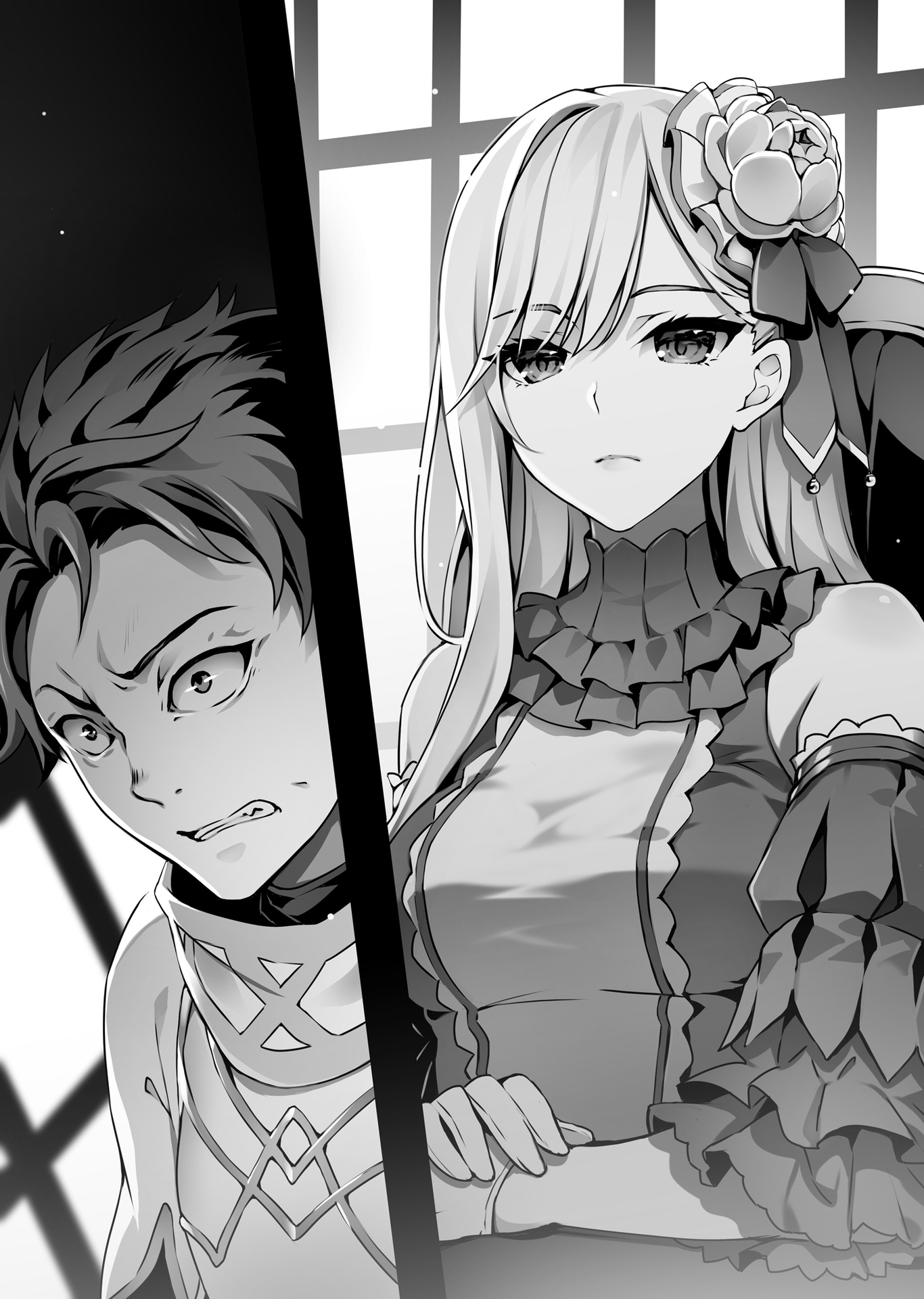 Ada tiga sosok di dalamnya: Hiroaki, Duke Huguenot, dan Roanna. Duke Huguenot dan Roanna berdiri untuk menyambut mereka, menundukkan kepala. Ekspresi mereka sedikit panik.