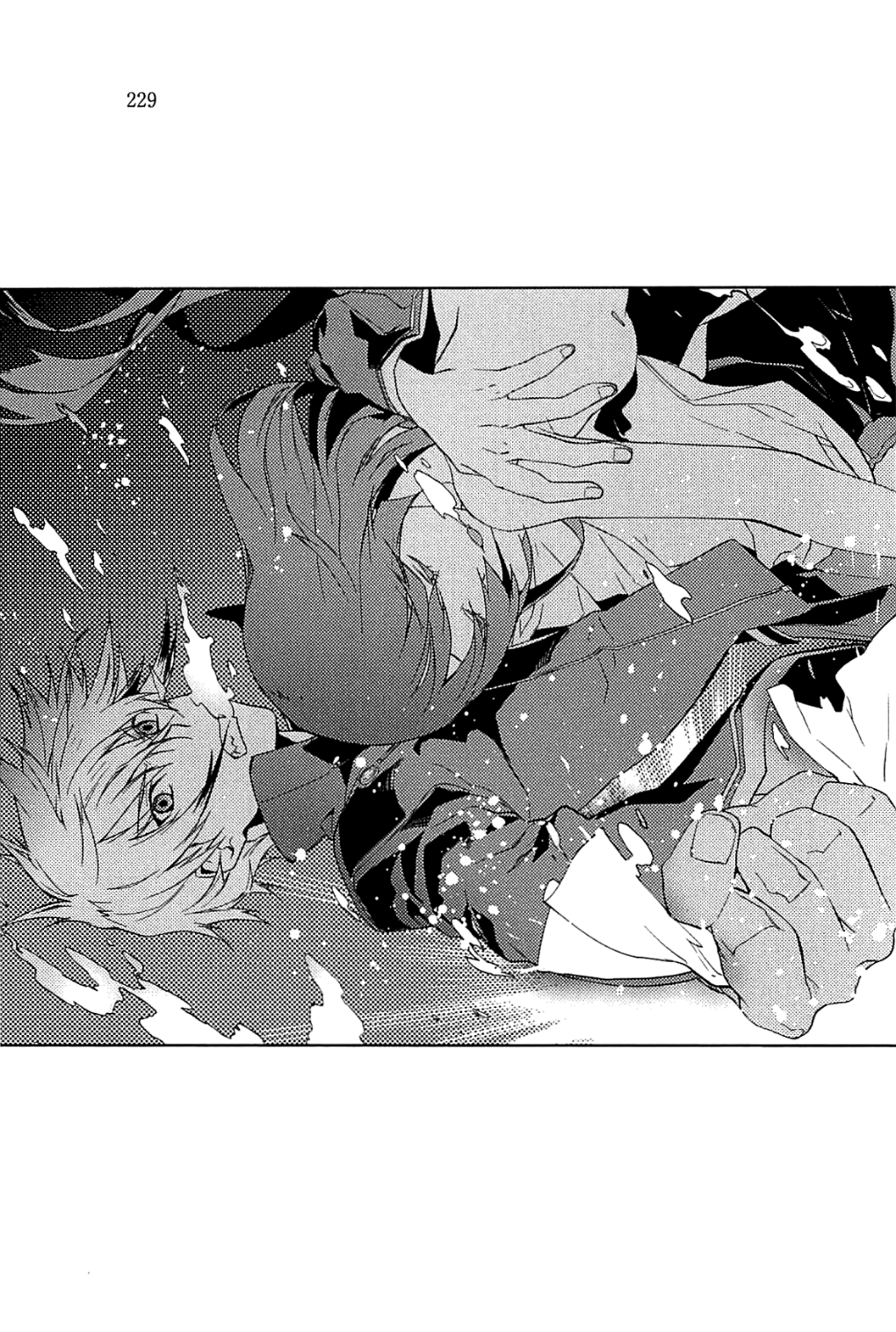 Mereka berdua terombang-ambing di air, air menekan mereka saat mengalir dari segala arah. Sejumlah besar gelembung keluar dari mulut Natsume saat kekuatan aliran terus berlanjut. Harutora berhasil menarik Natsume ke dalam pelukannya.